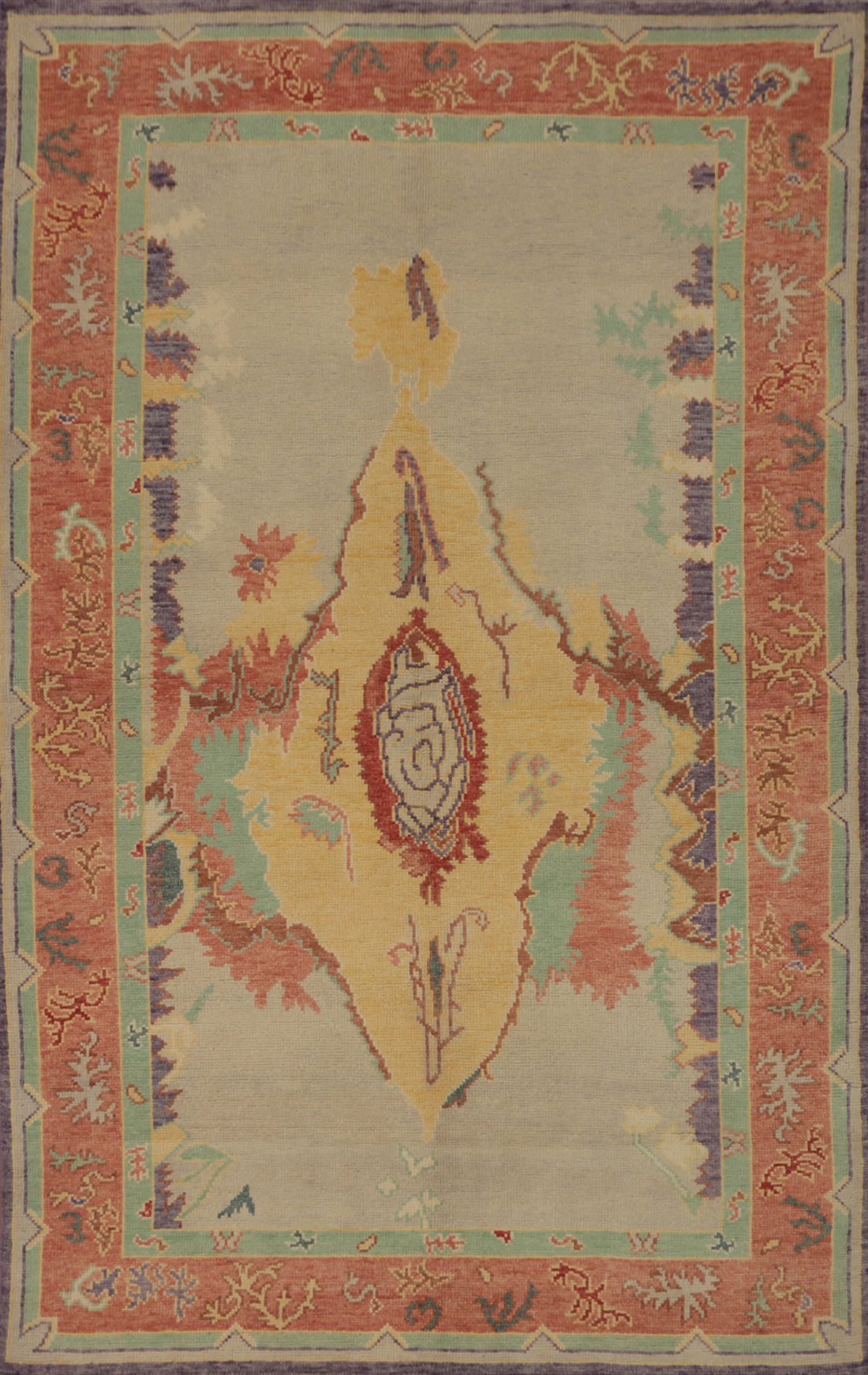 Vegetable Dye Wool Oushak Turkish Area Rug 7x9