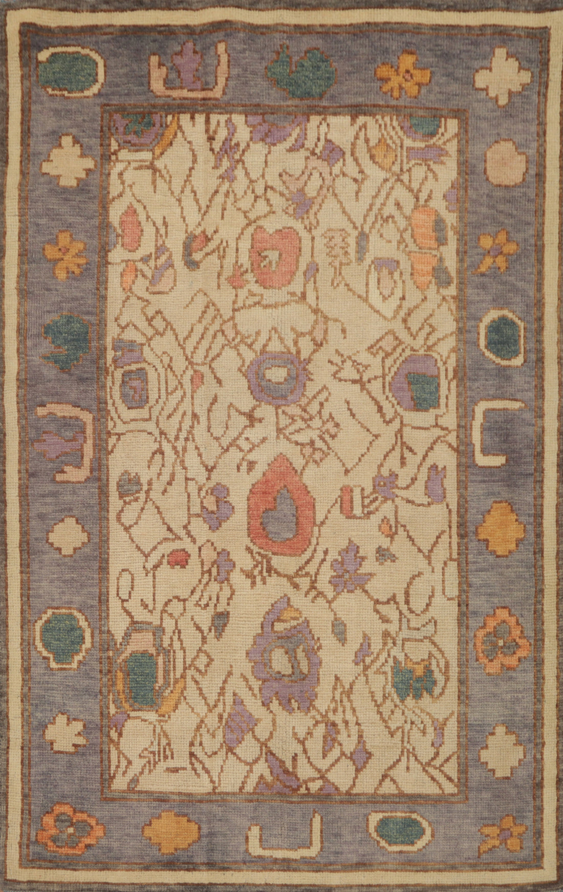 Vegetable Dye Wool Oushak Turkish Rug 3x5