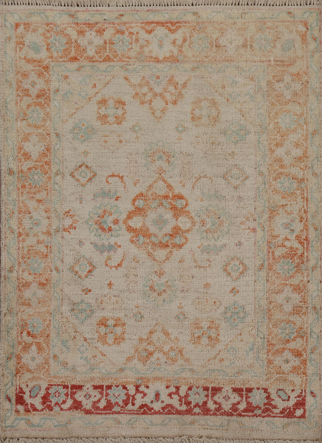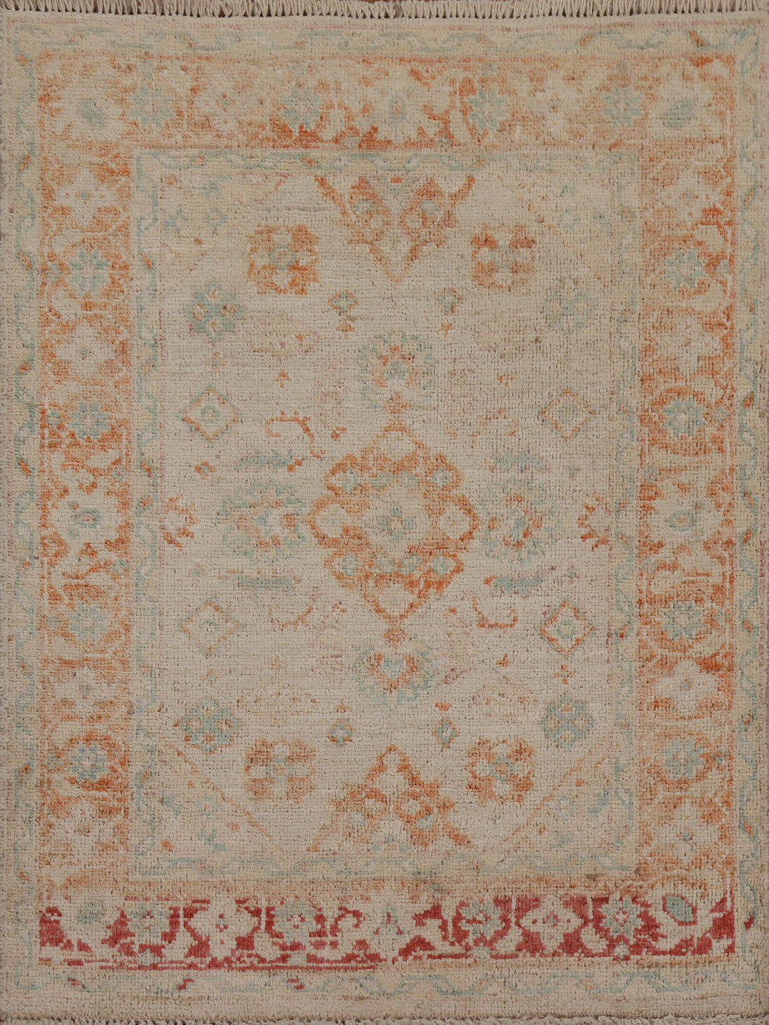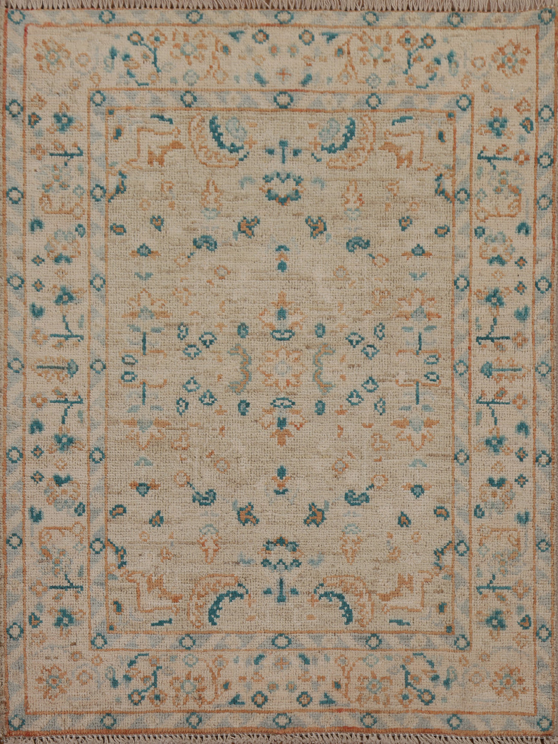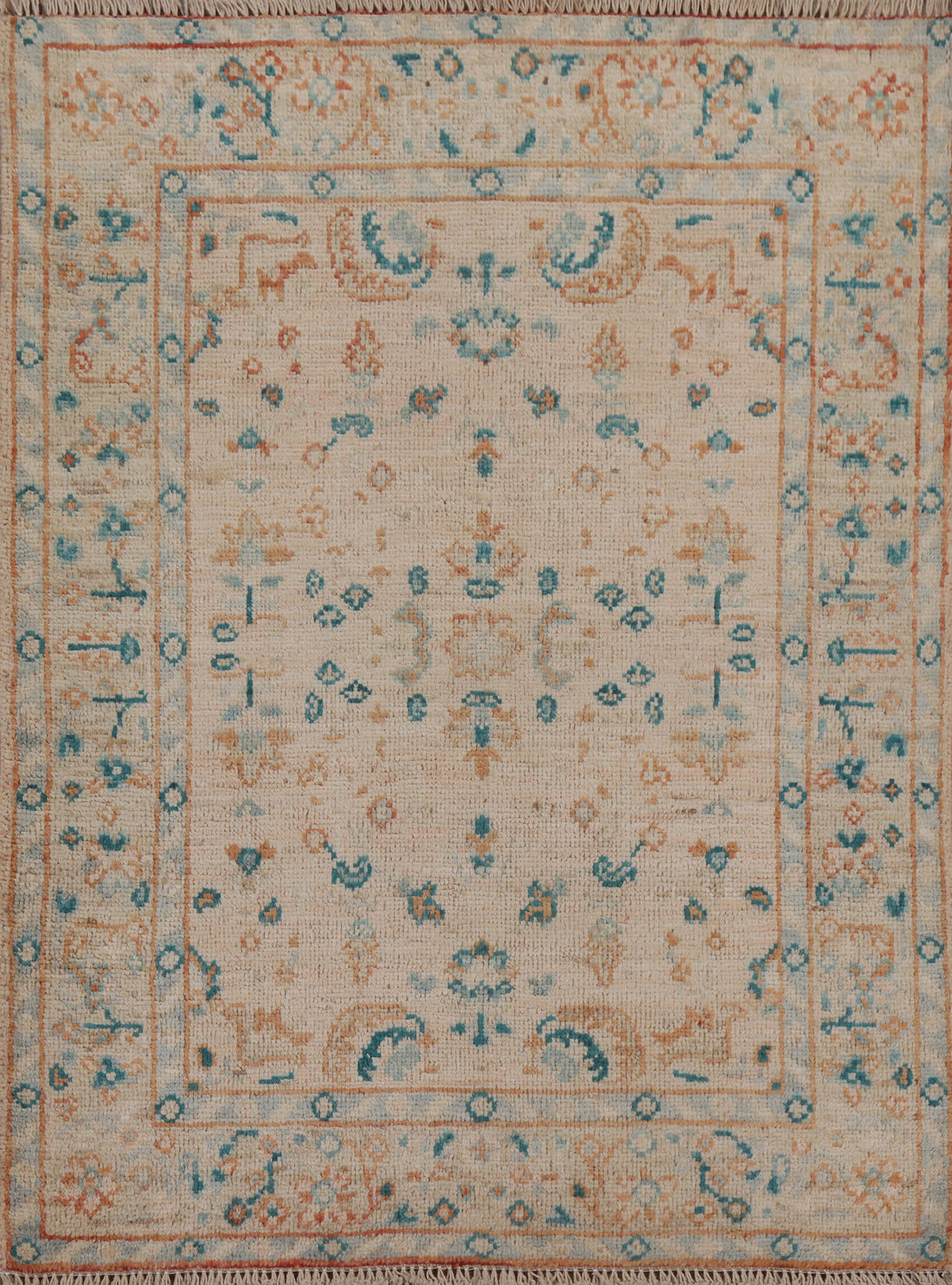 Vegetable Dye Oushak Turkish Wool Rug 3x4