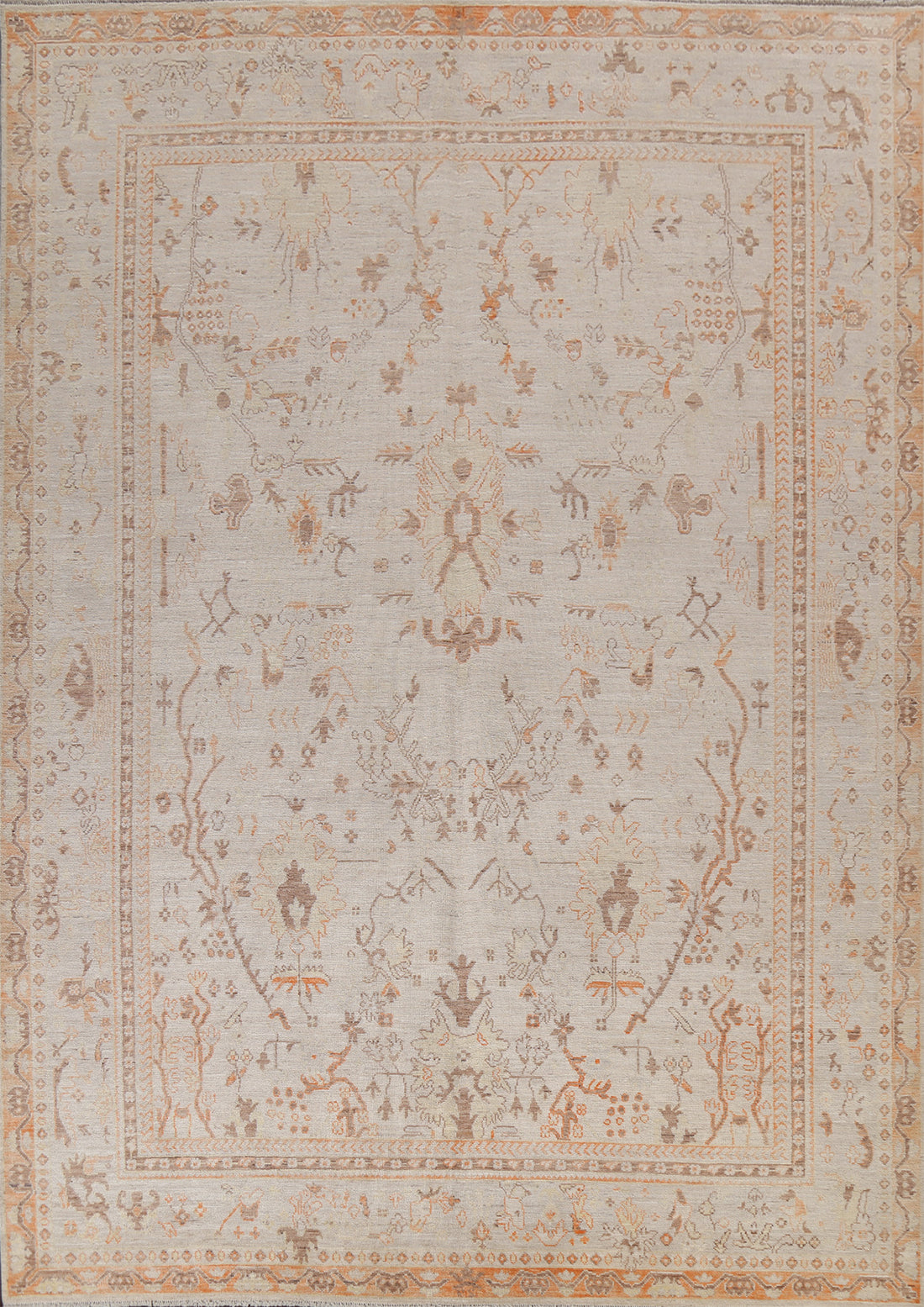 Vegetable Dye Gray Oushak Turkish Area Rug 9x12