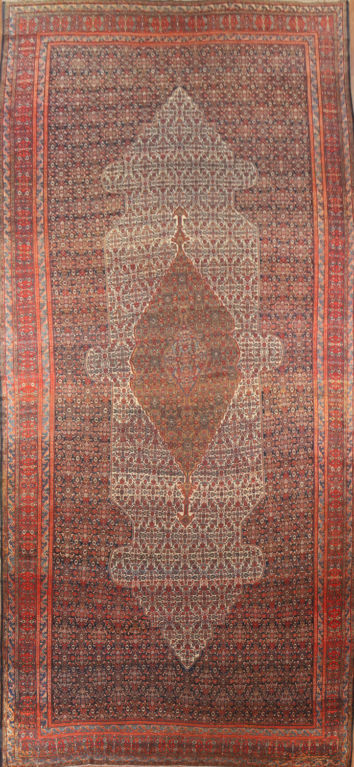 Pre-1900 Antique Mahal Vegetable Dye Persian Large Rug 10x18