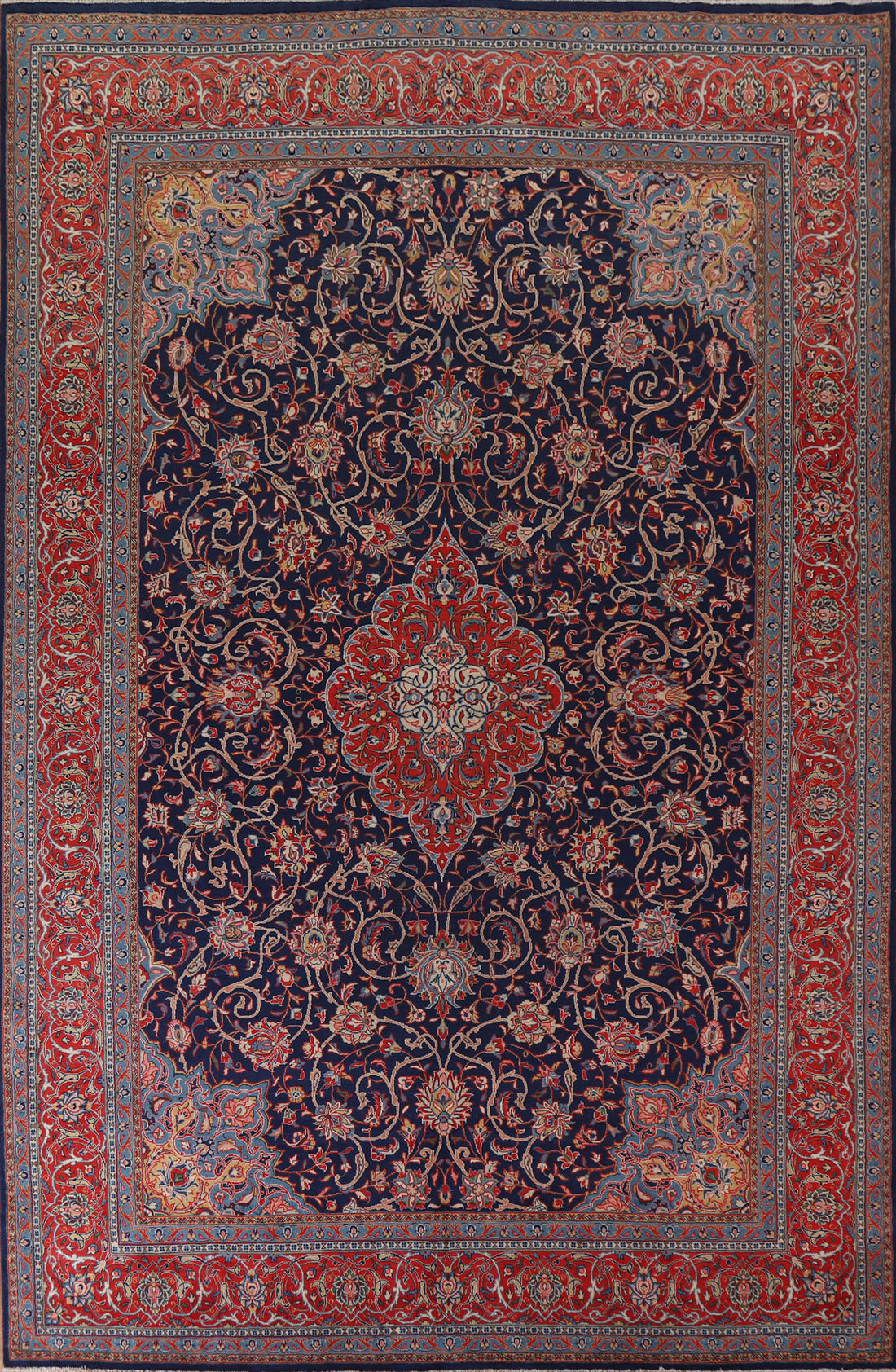 Navy Blue Floral Sarouk Persian Large Rug 10x14