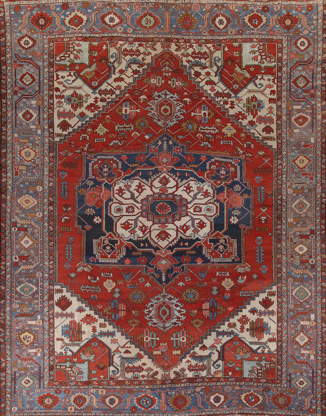 Antique Pre-1900 Vegetable Dye Heriz Serapi Persian 10x15 Wool Rug
