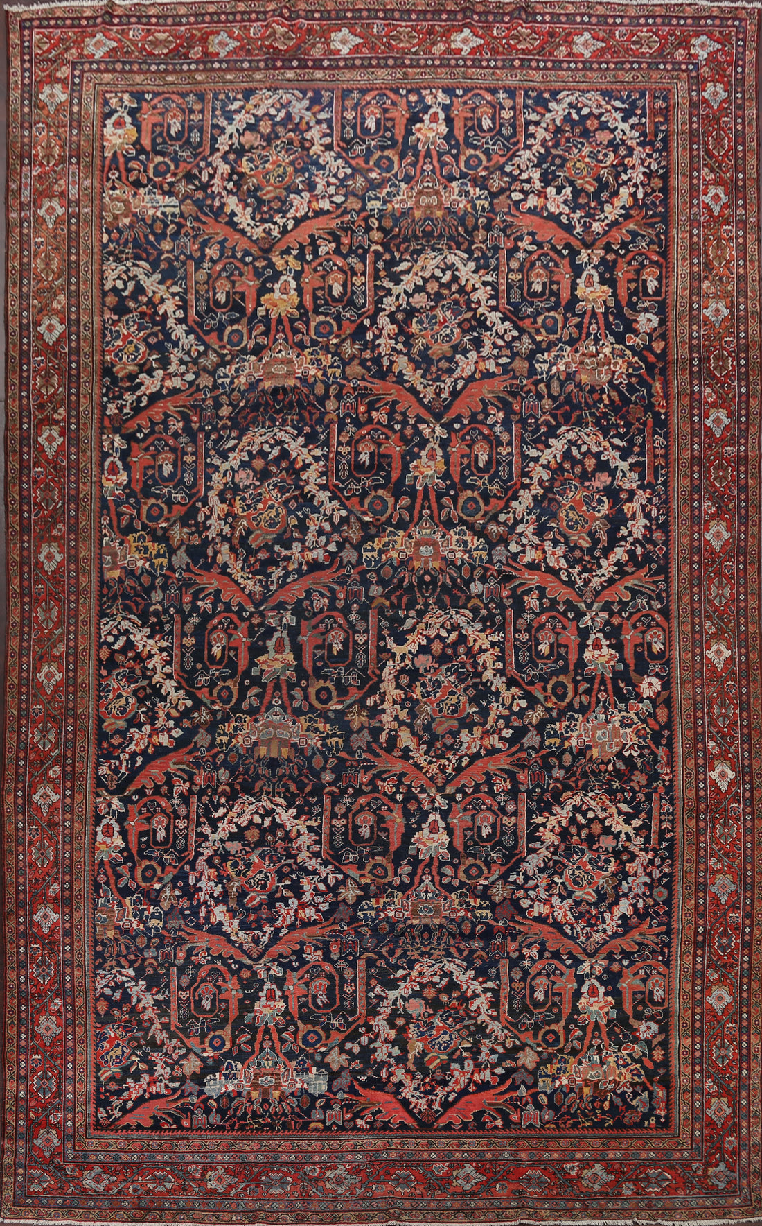 Antique Navy Blue Floral Sarouk Persian Rug 11x18