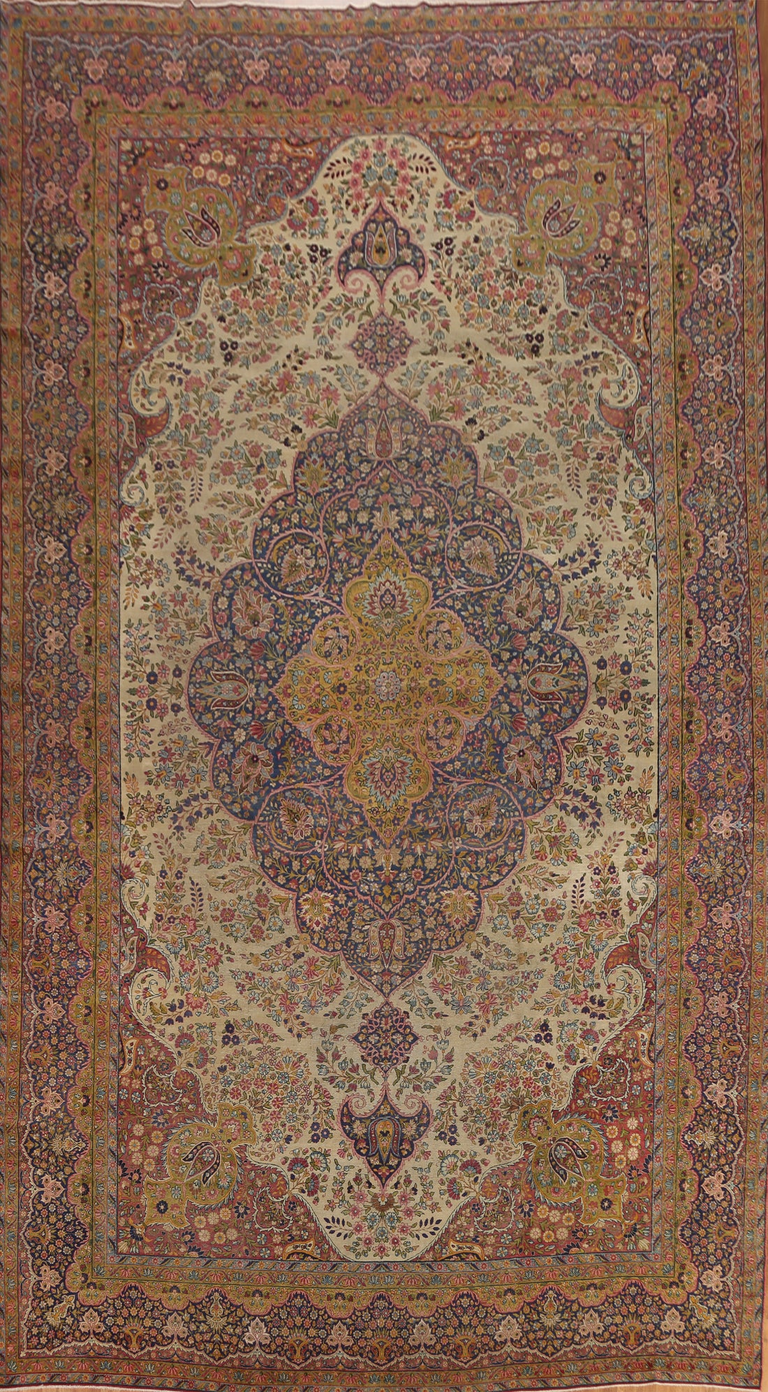Pre-1900 Antique Kerman Vegetable Dye Persian Large Rug 11x18