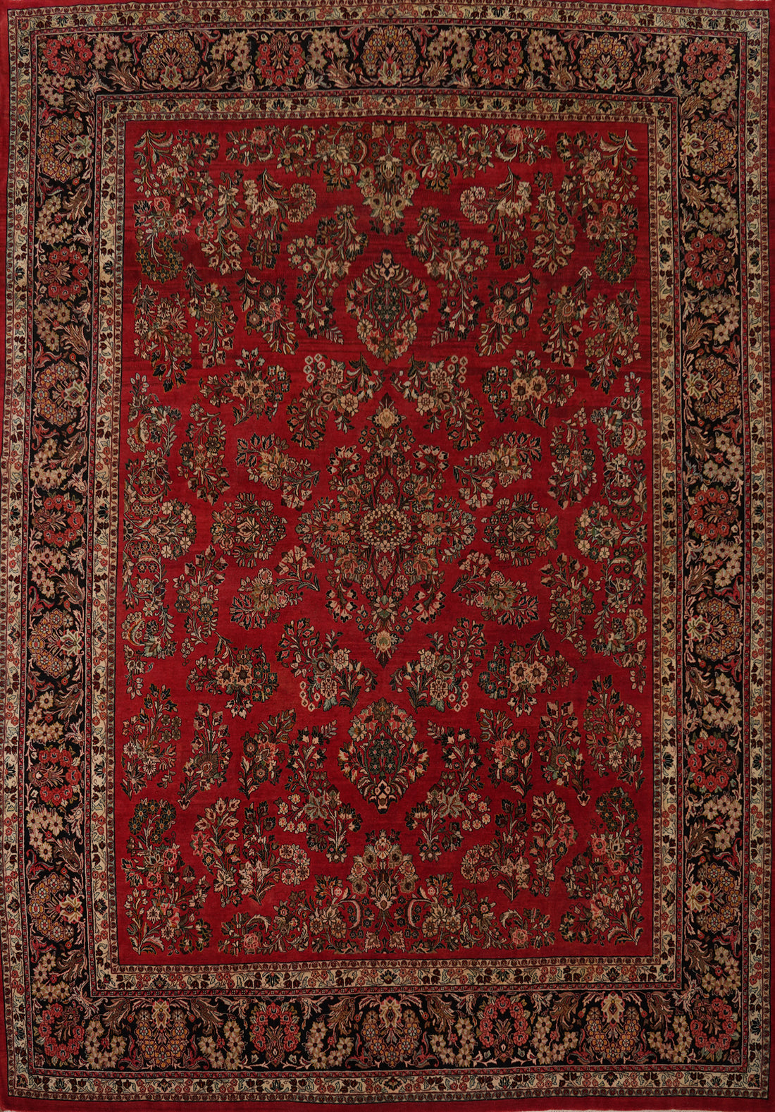 Vintage Red Floral Sarouk Persian Large Rug 13x16