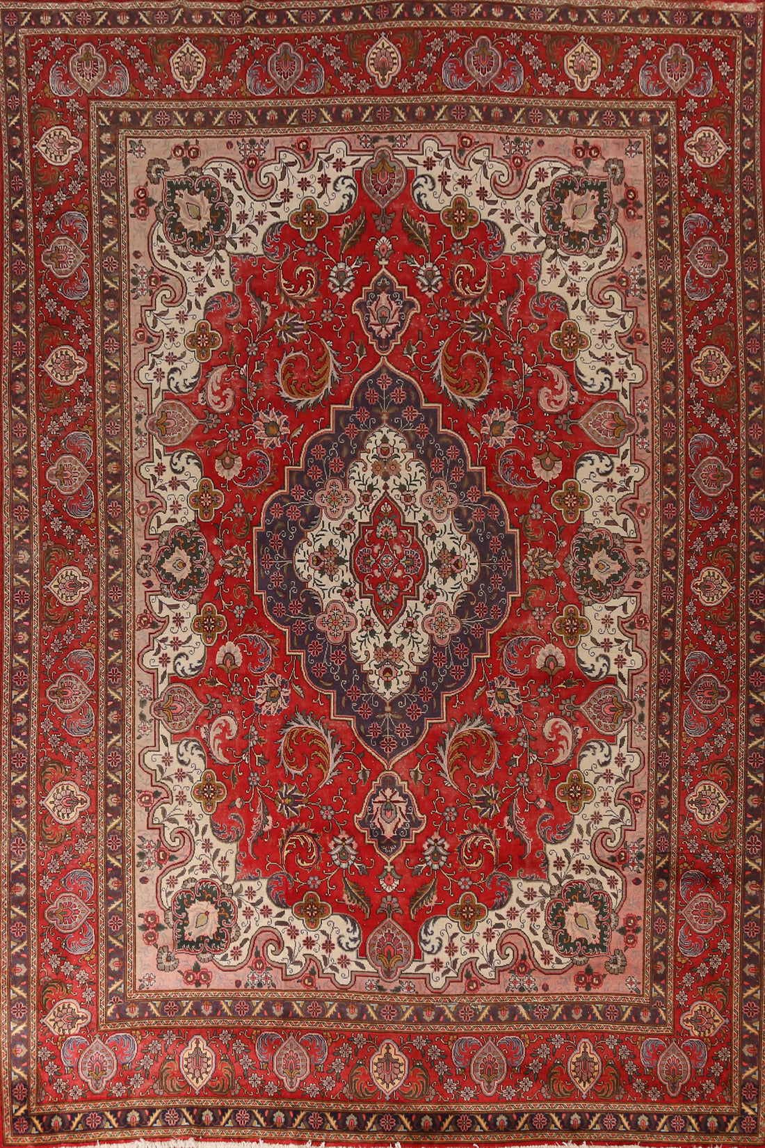Red Medallion Wool Tabriz Persian Large Rug 11x16