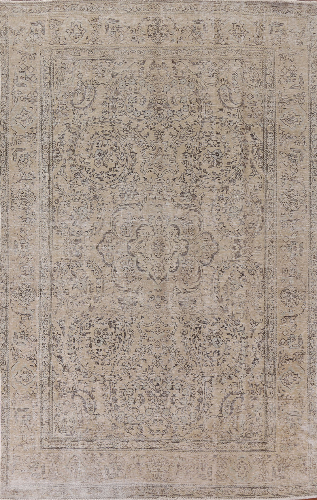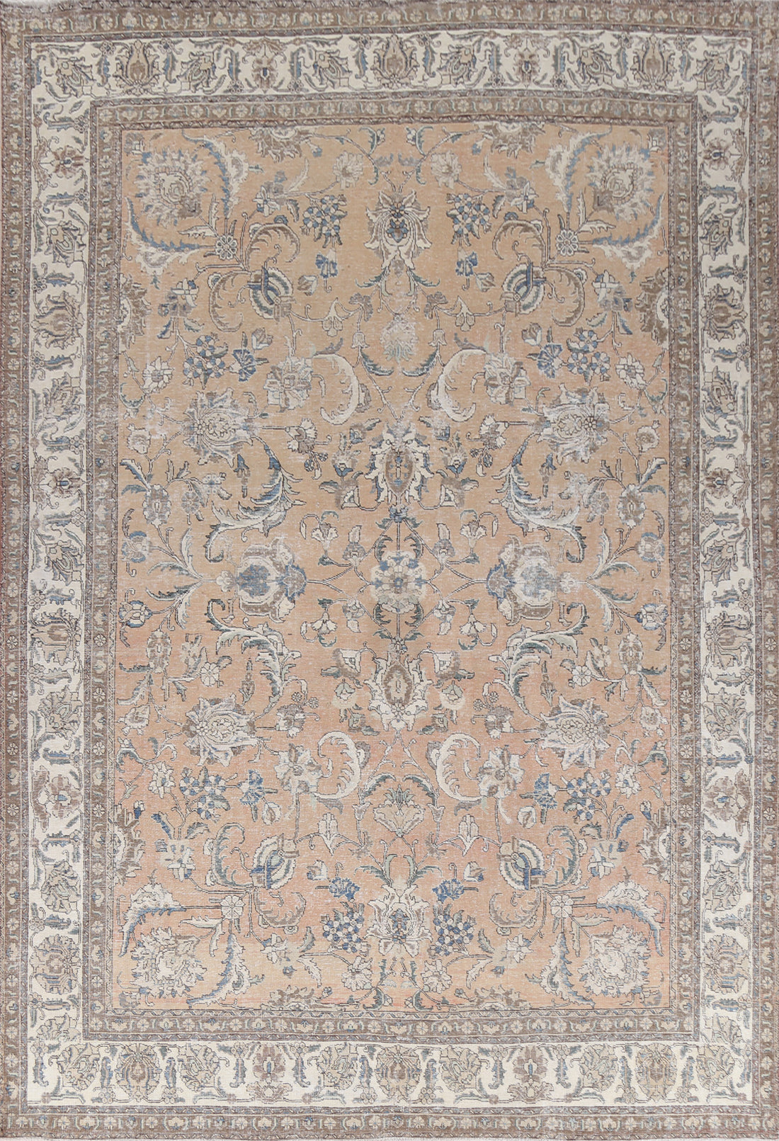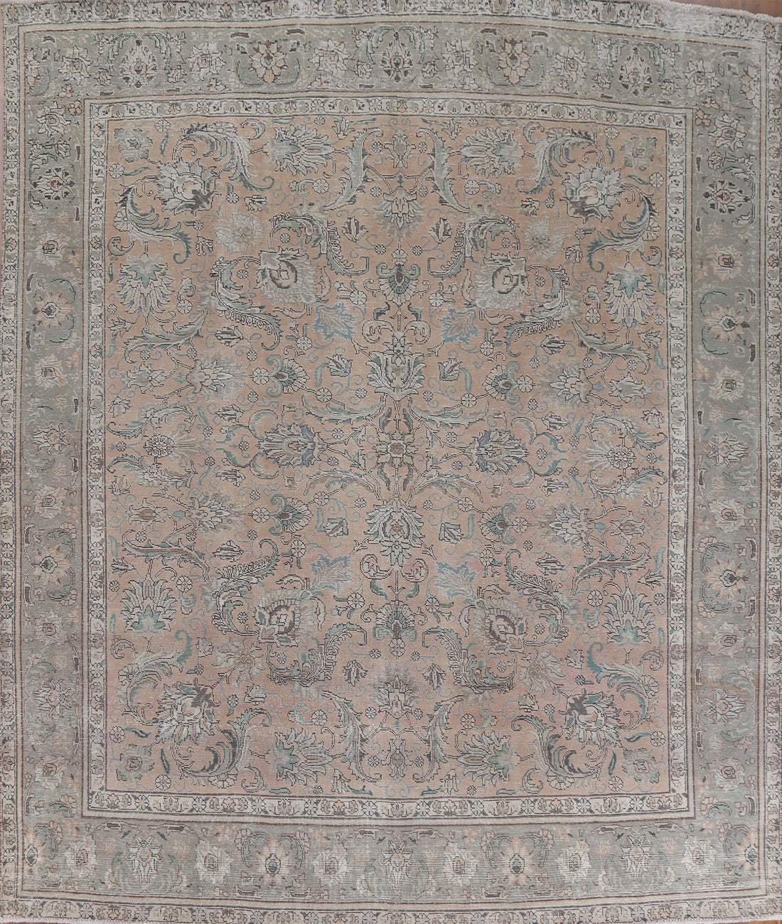 Floral Distressed Tabriz Persian Area Rug 10x13