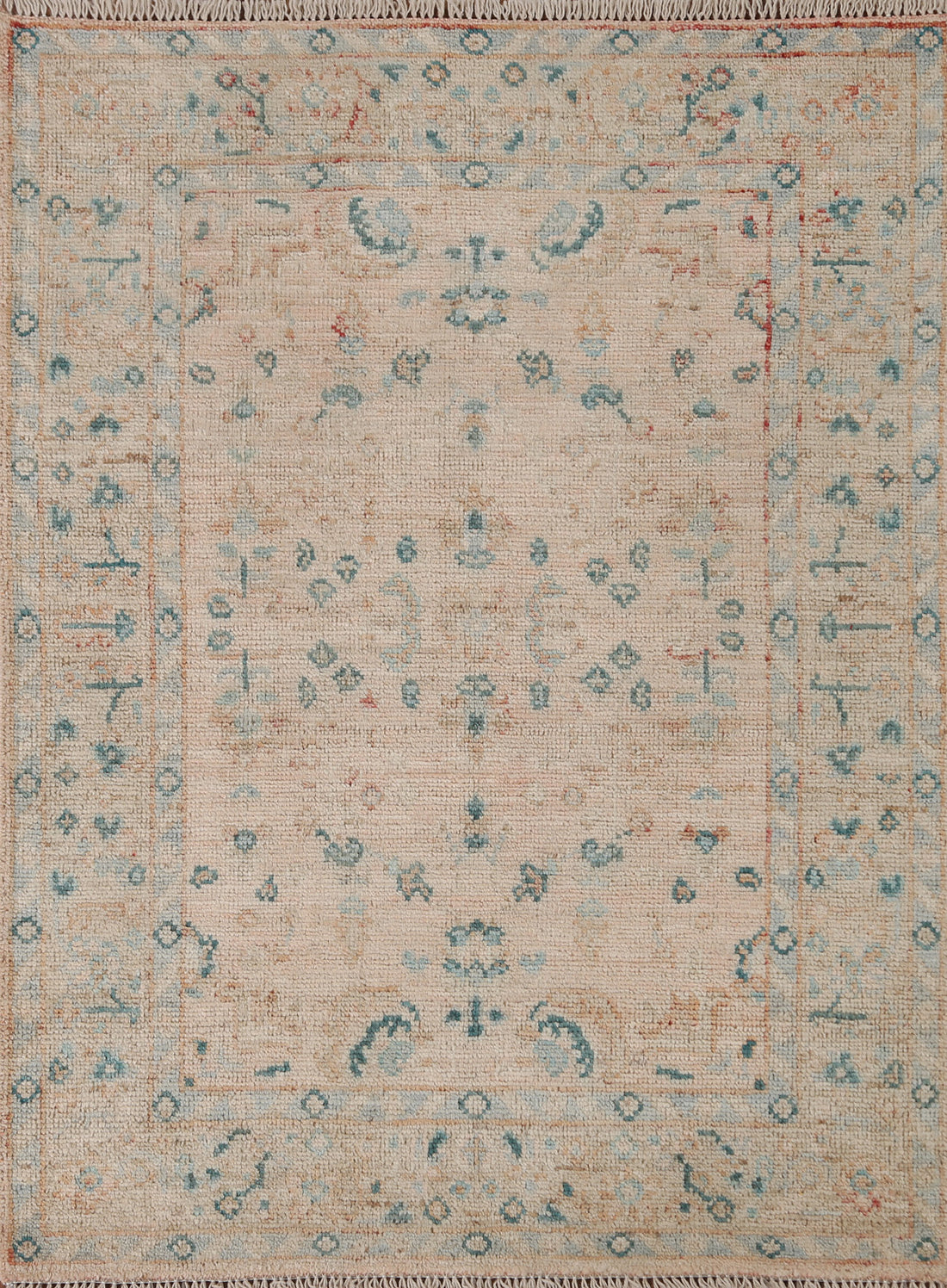 Hand-Knotted Oushak Turkish Area Rug 3x4