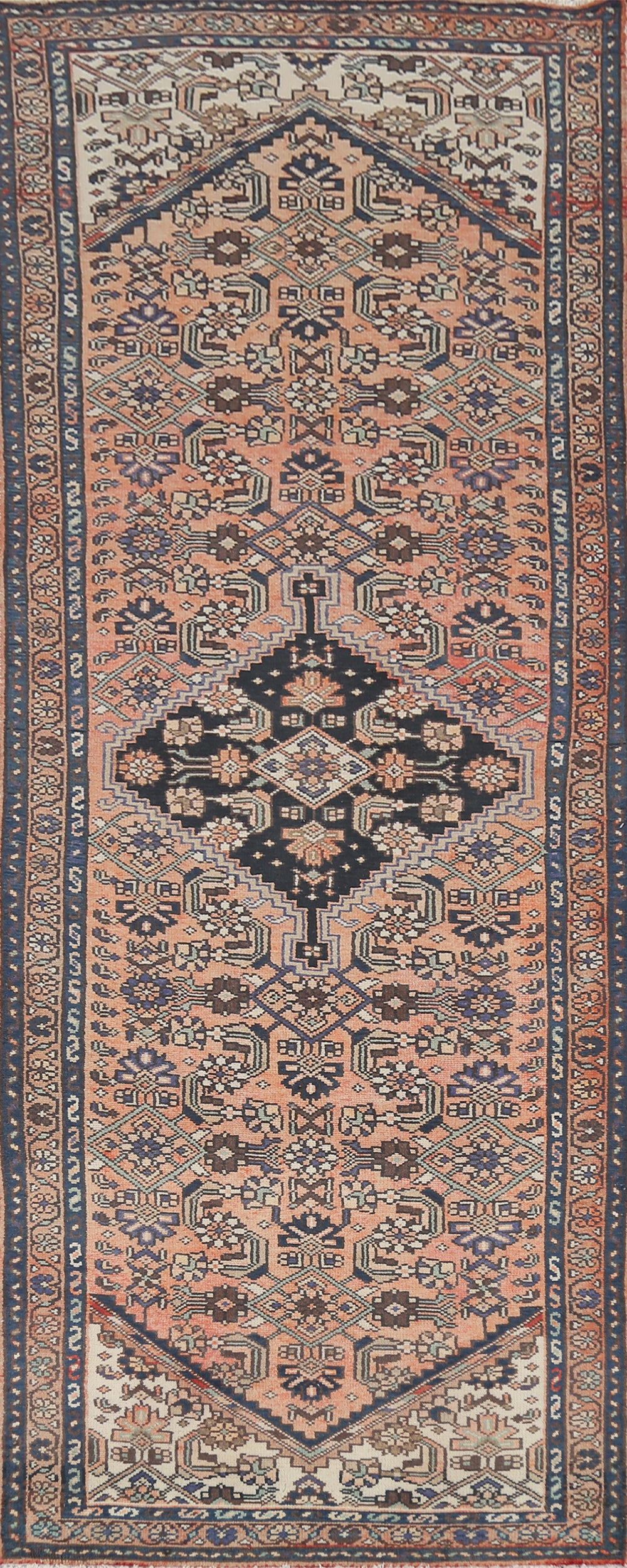 Geometric Wool Hamedan Persian Runner Rug 3x10