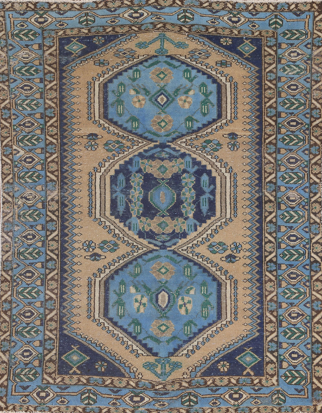 Vintage Wool Bakhtiari Persian Rug 4x7