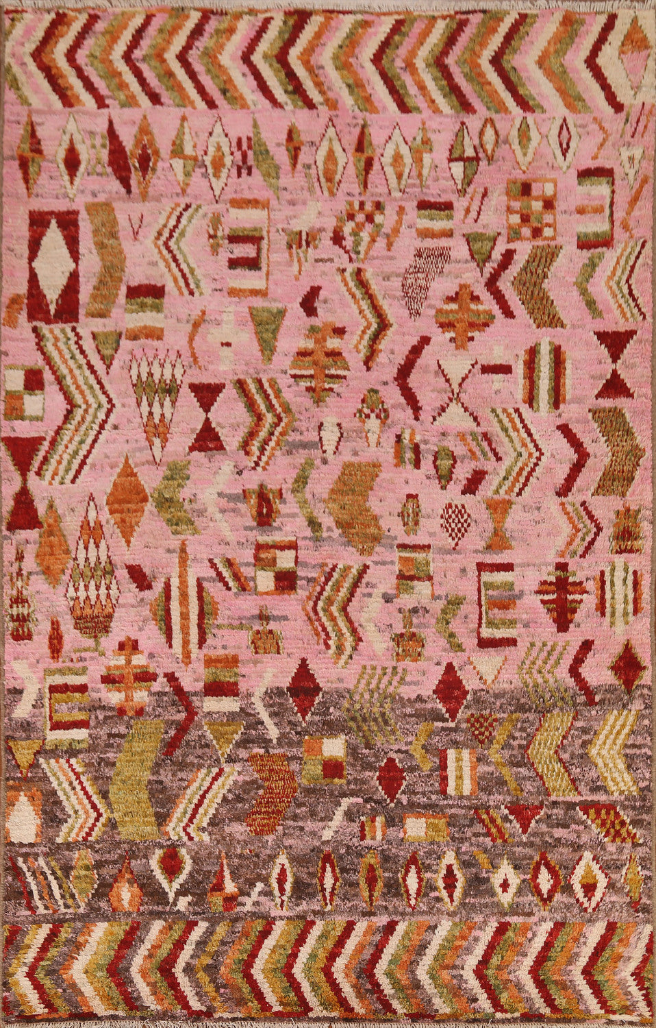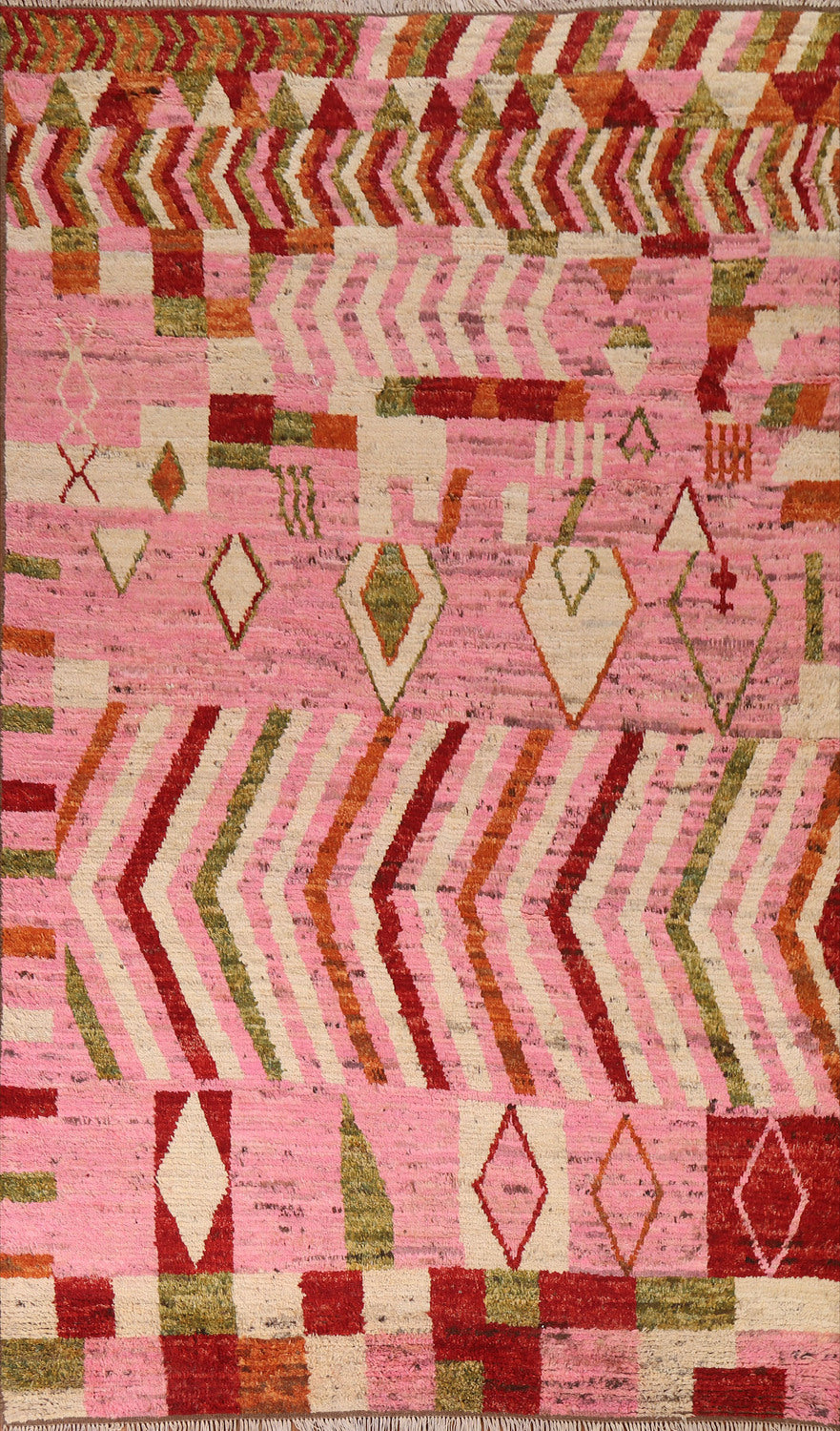 Pink Wool Moroccan Oriental Area Rug 6x9