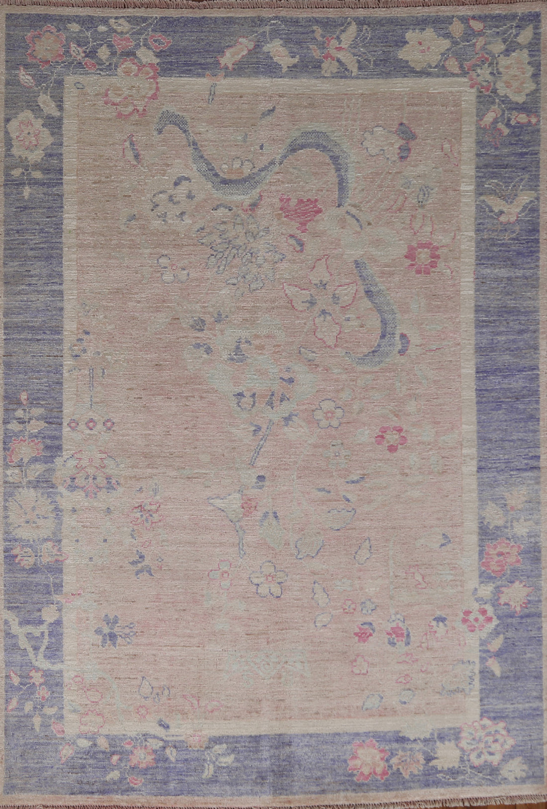 Vegetable Dye Wool Pink Art Deco Turkish Rug 5x7