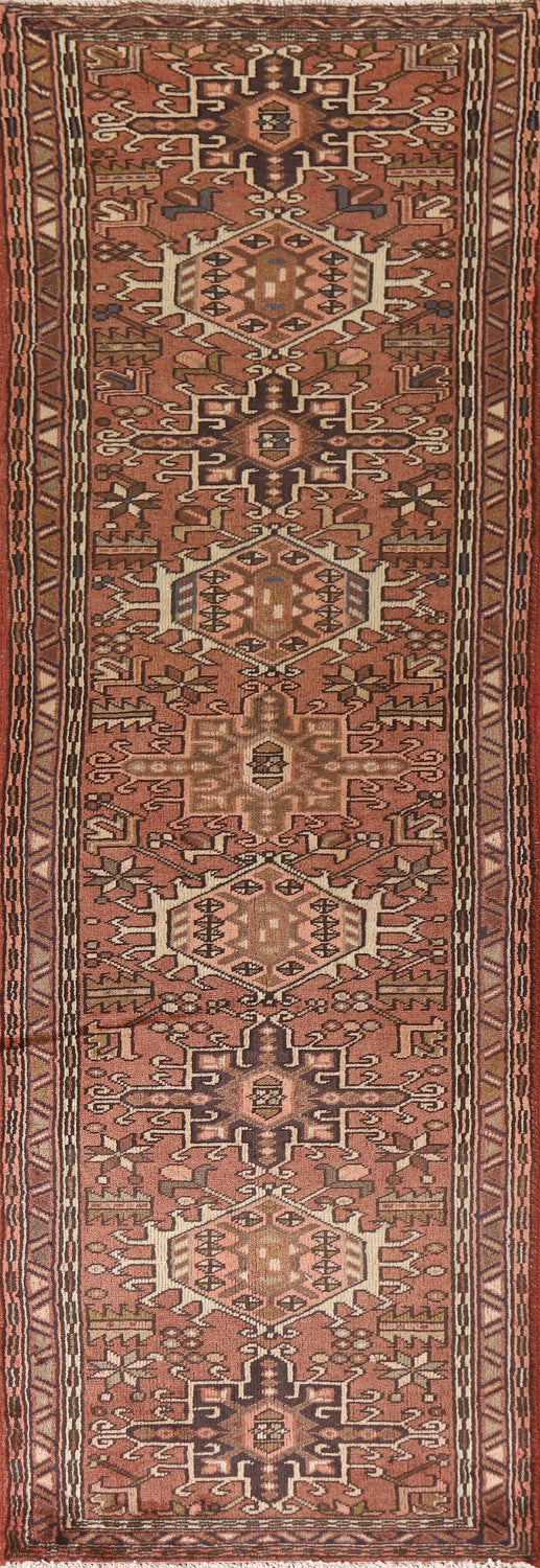 Pink Geometric Heriz Persian Runner Rug 3x13