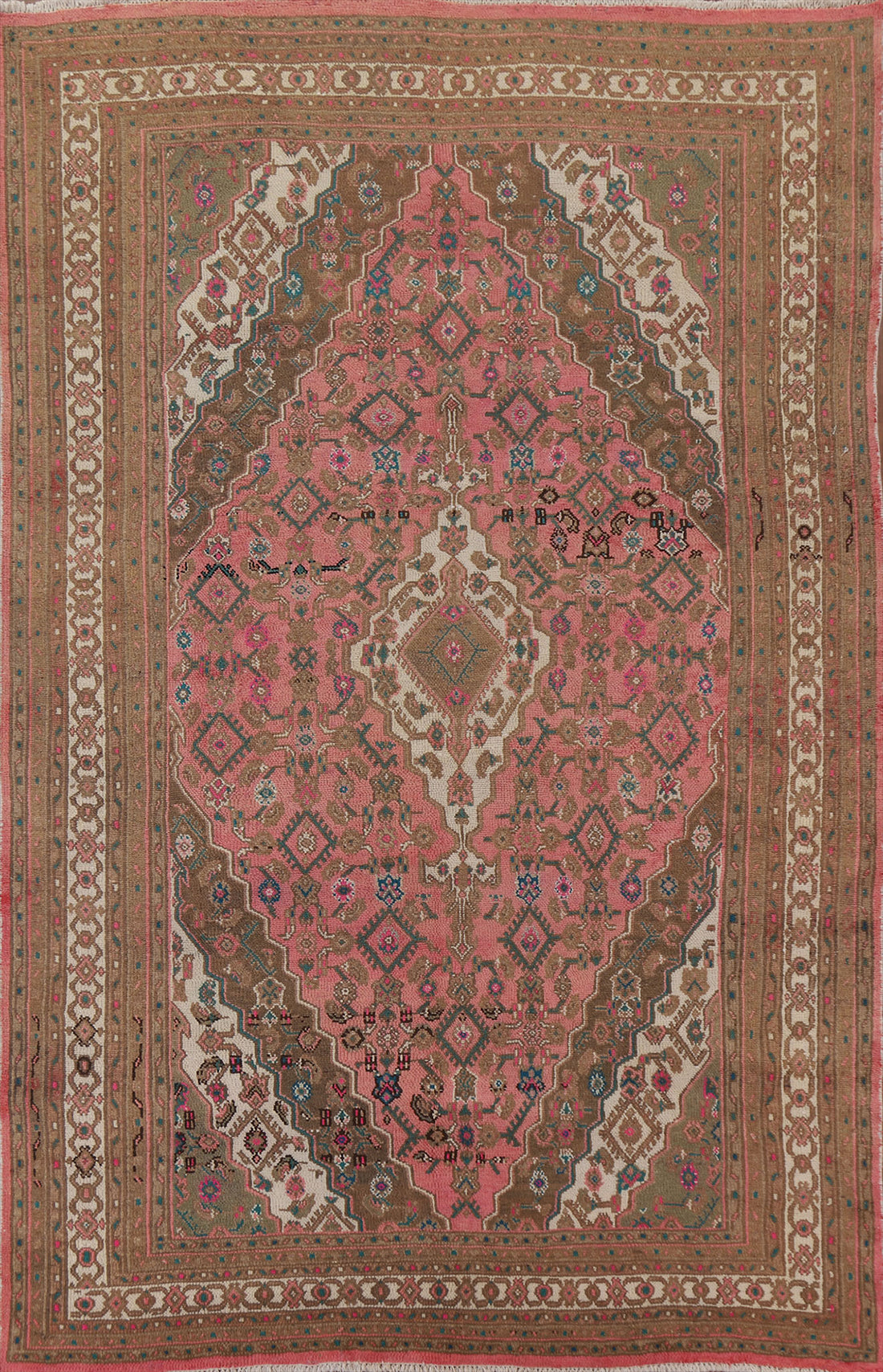 Pink Geometric Hamedan Persian Area Rug 7x10