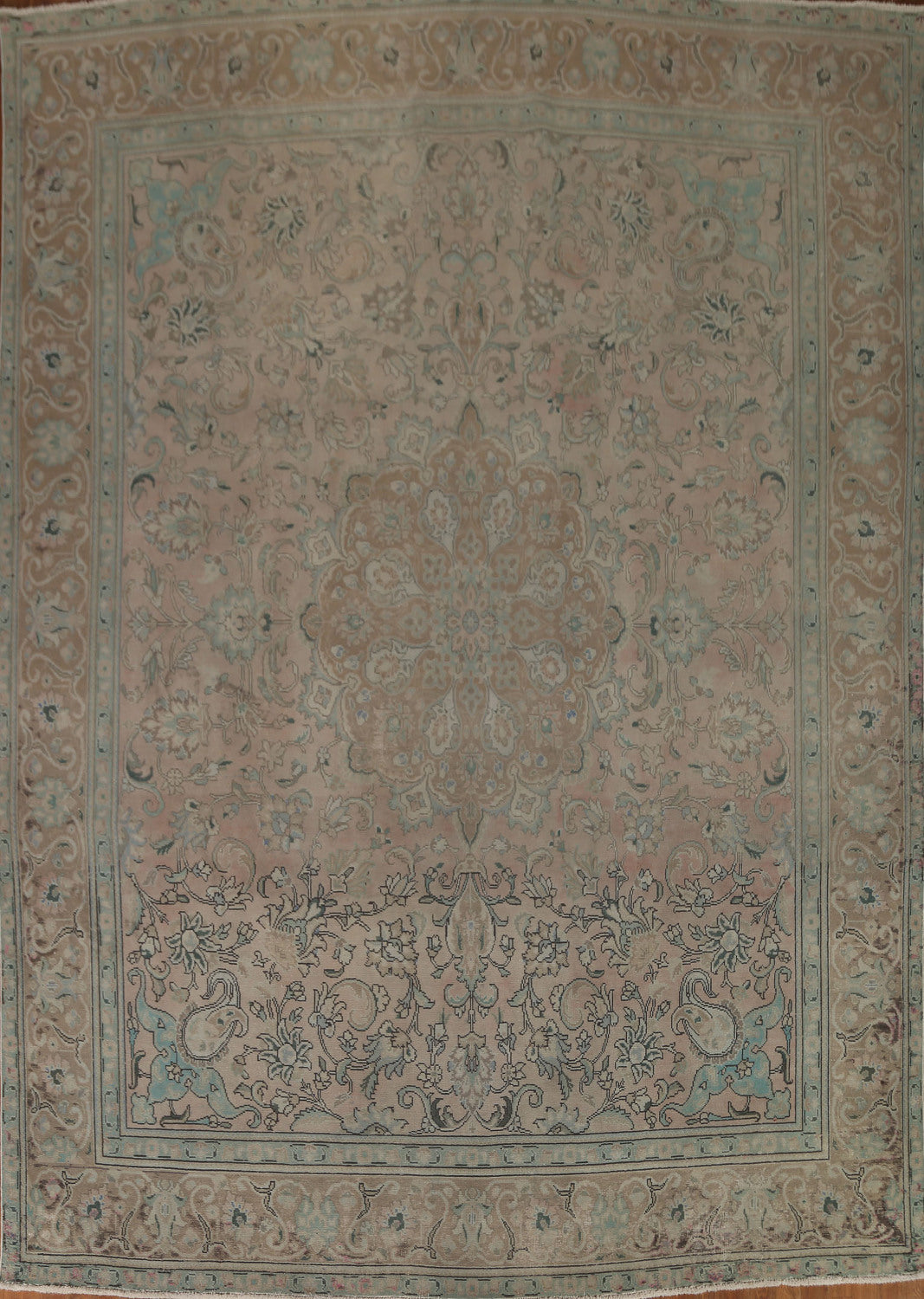 Distressed Muted Tabriz Persian Area Rug 10x12