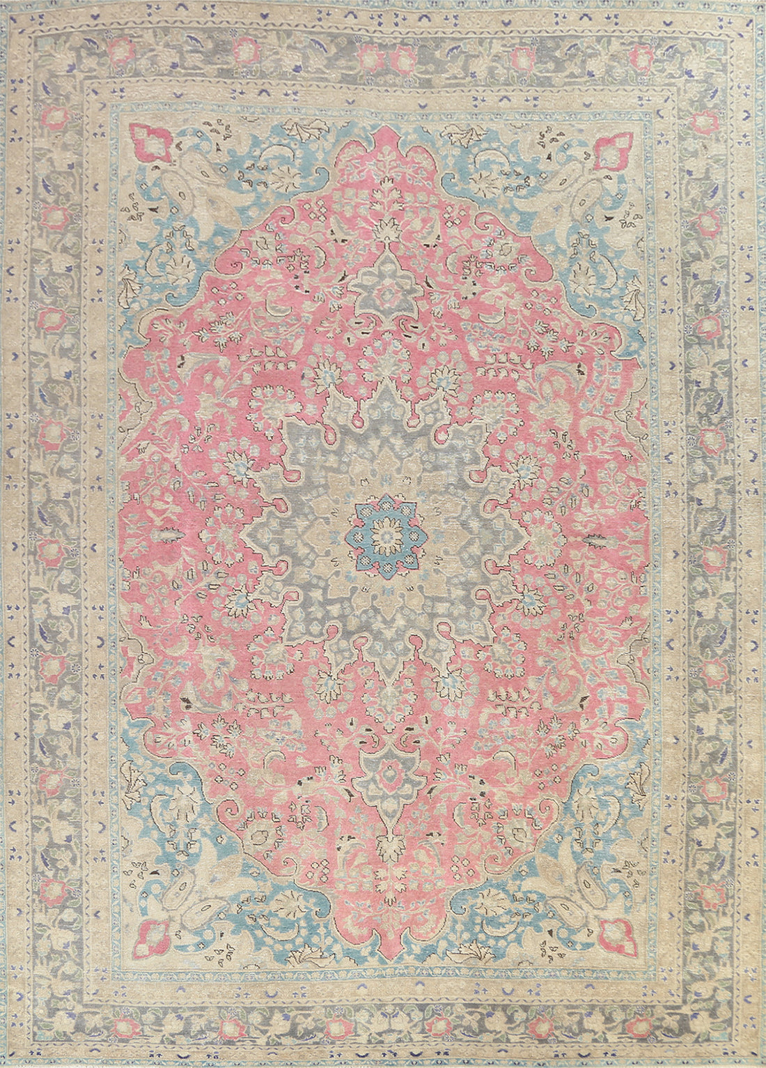 Handmade Wool & Silk Pink Tabriz Persian Area Rug 7x10