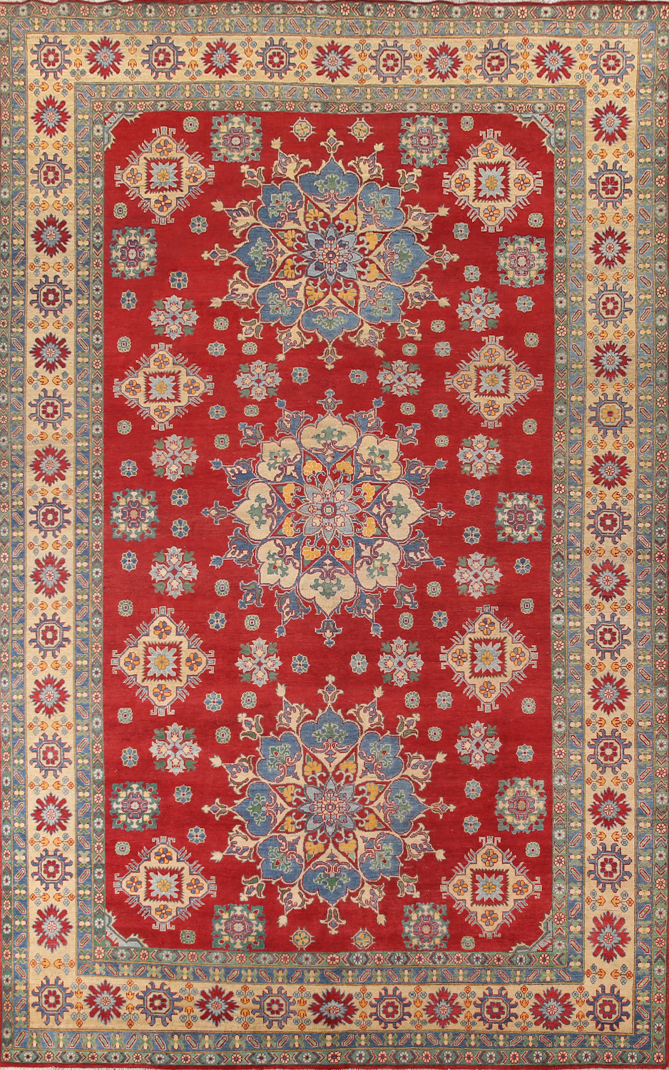 A Beautiful Genuine Pakistan Kazak rug is Hand Knotted by skillful weavers in Pakistan with...