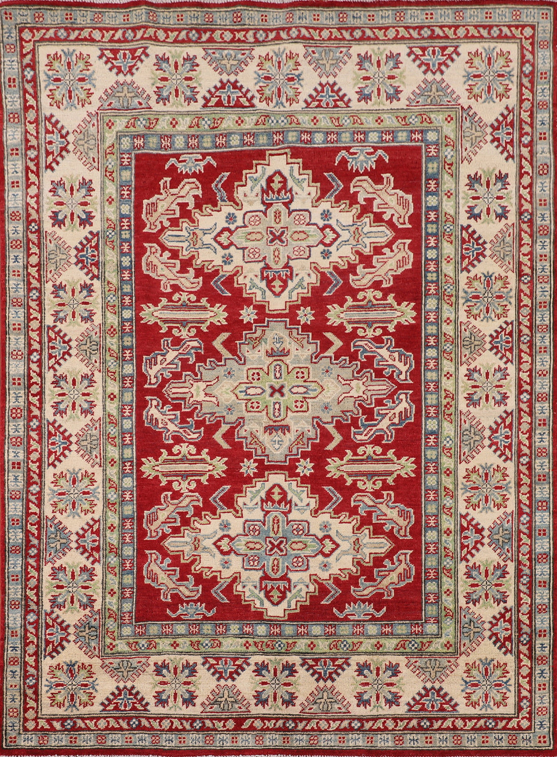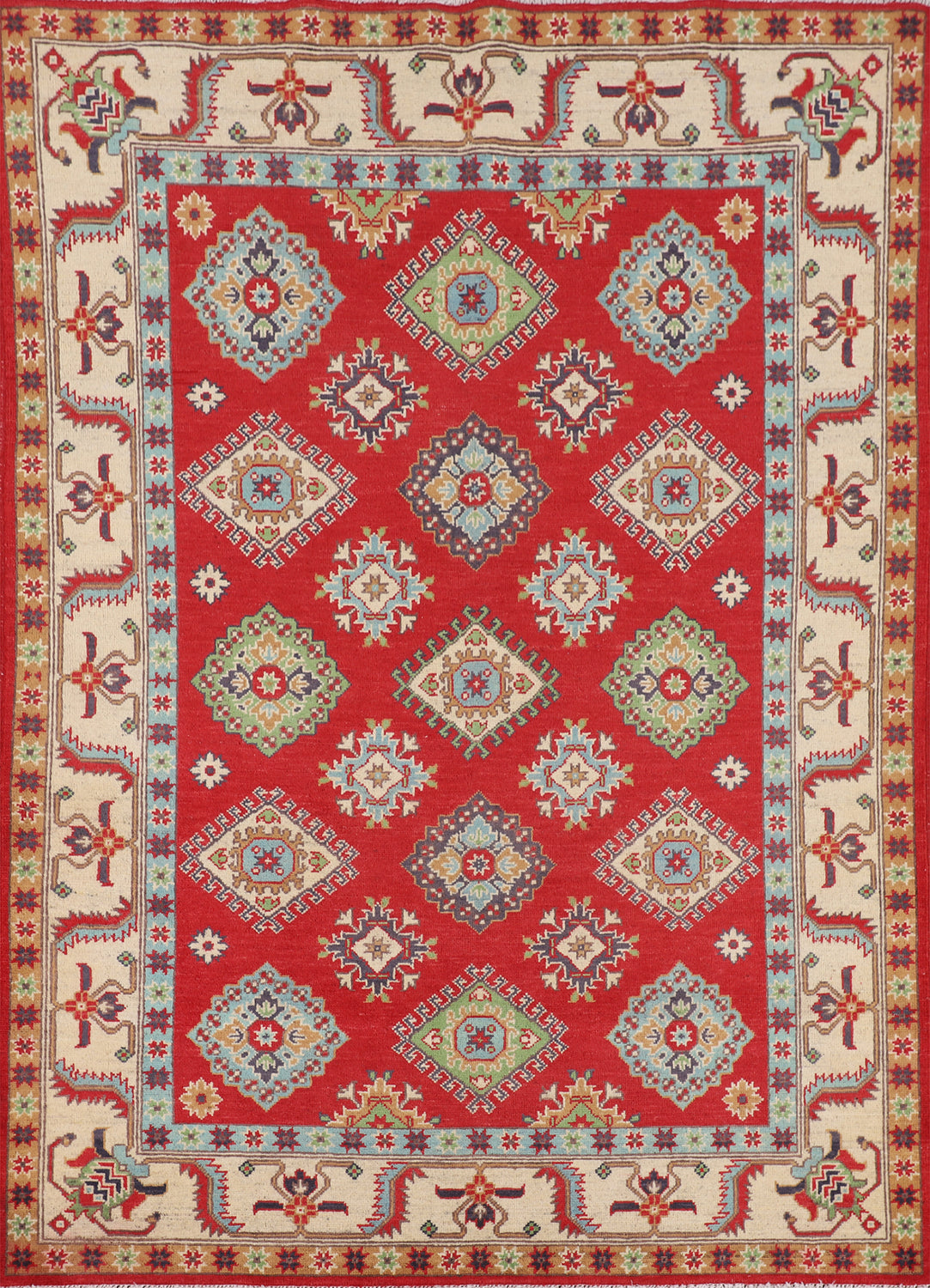 Handmade Red Kazak Oriental Wool Rug 5x7