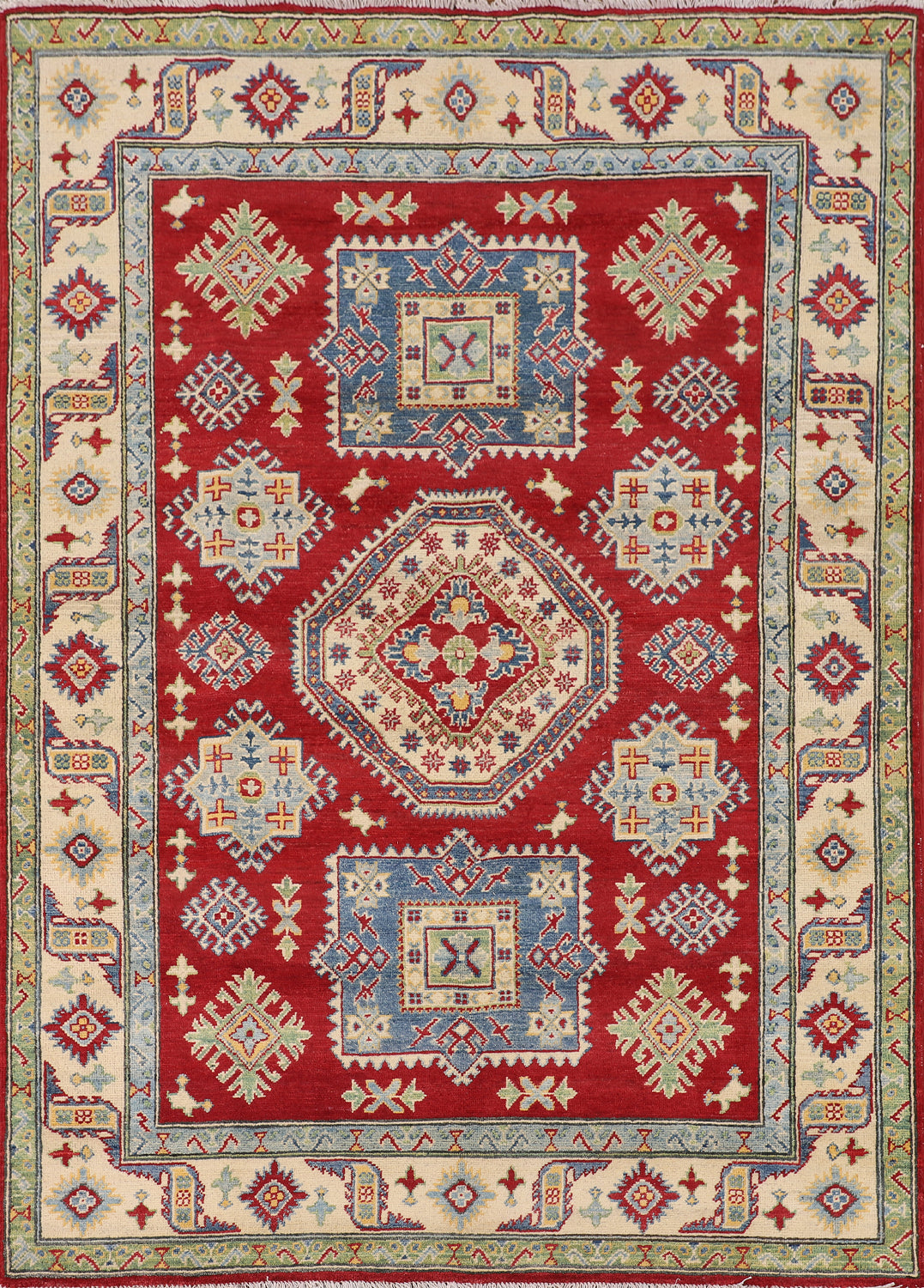 Handmade Red Wool Kazak Oriental Rug 5x7