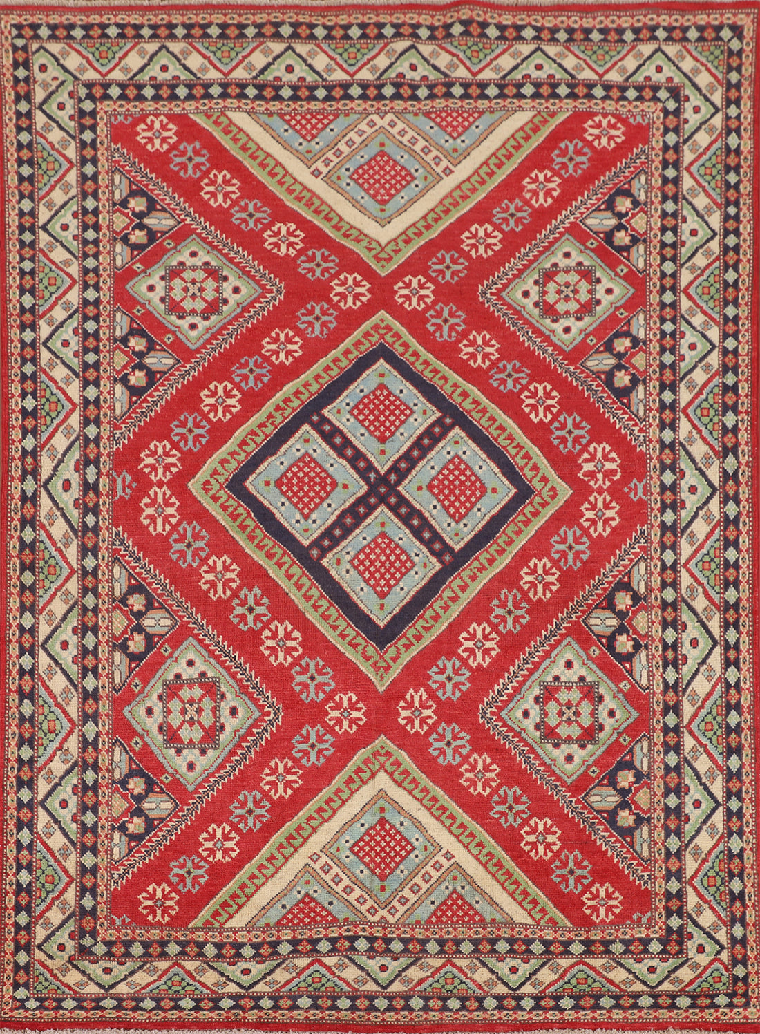 Geometric Red Wool Kazak Oriental Rug 5x7