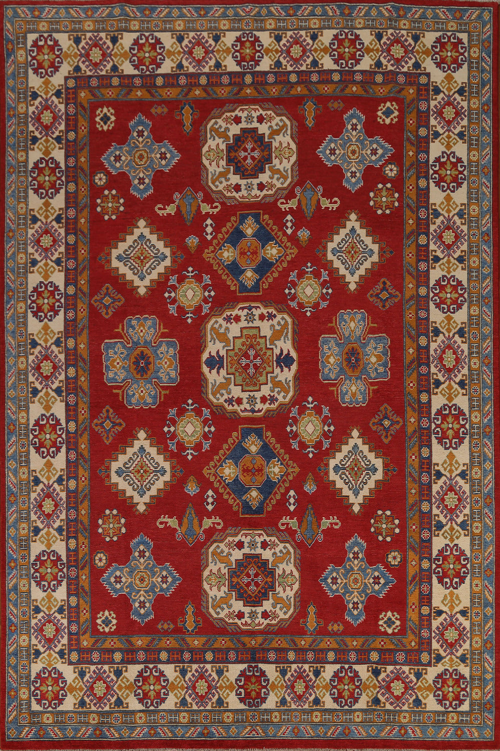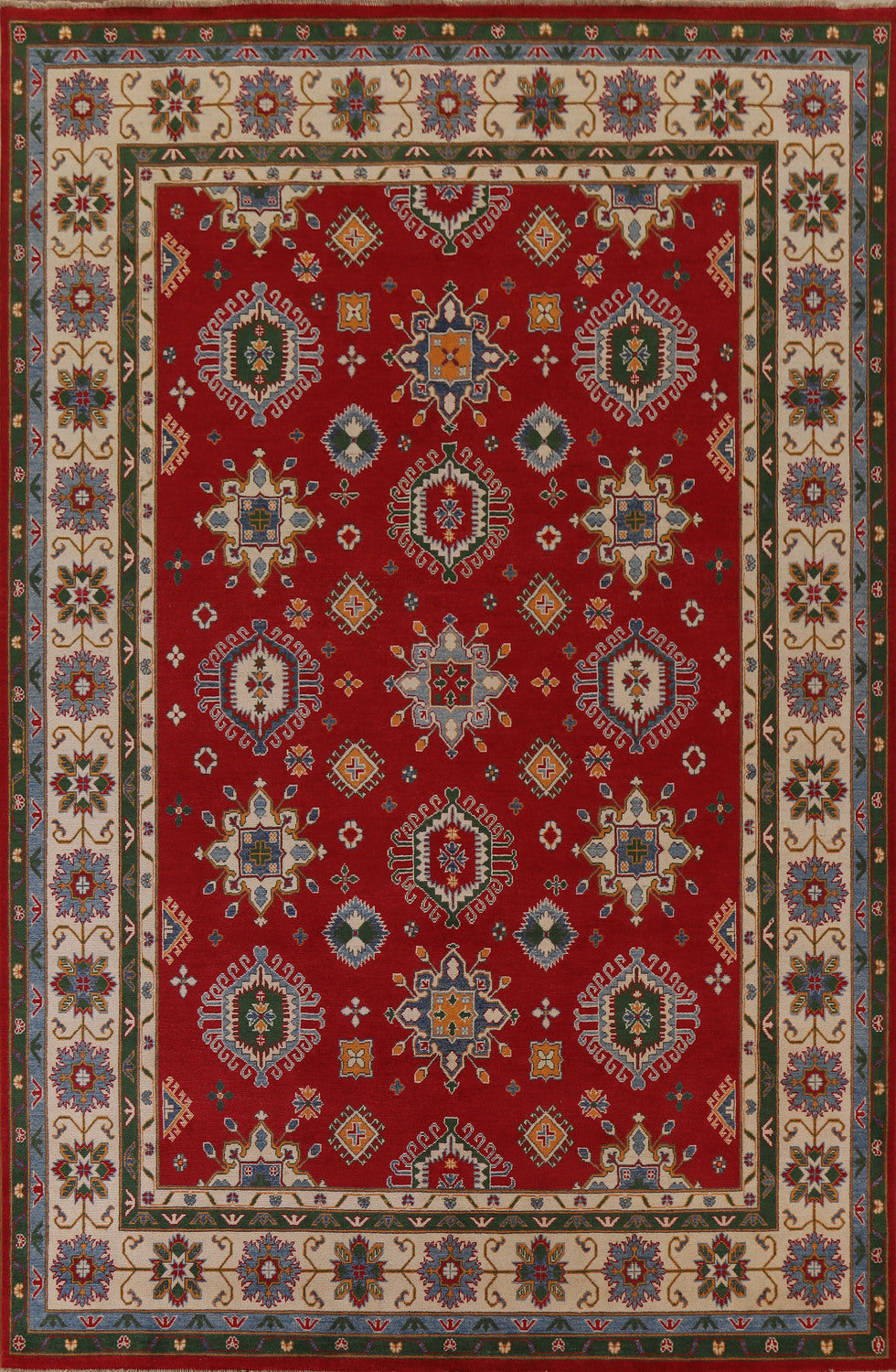 Red Wool Kazak Vegetable Dye Area Rug 6x8