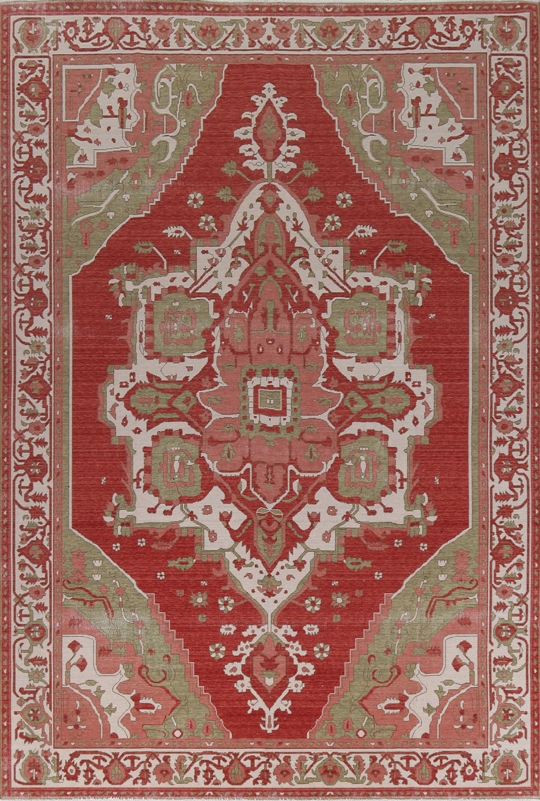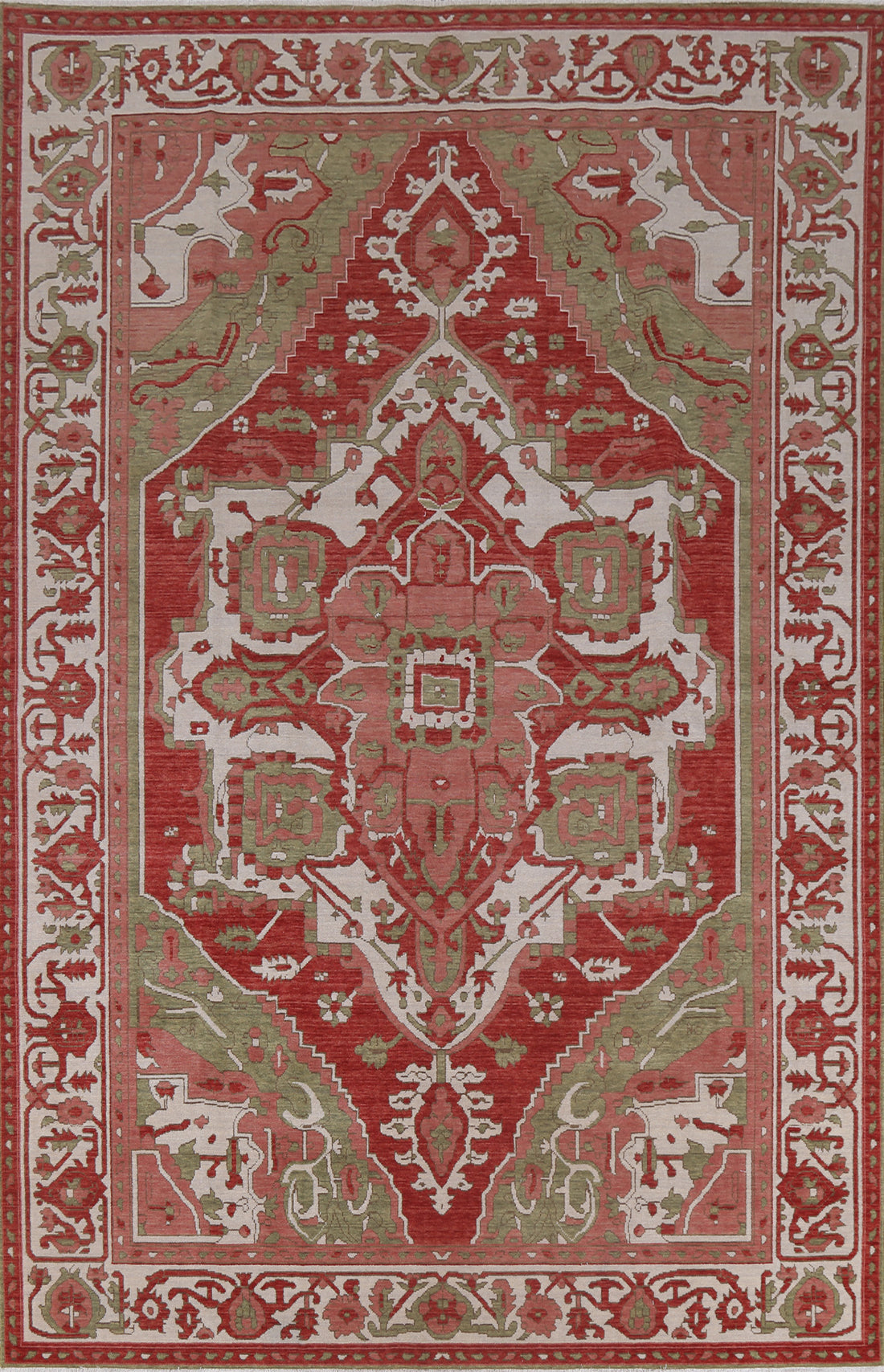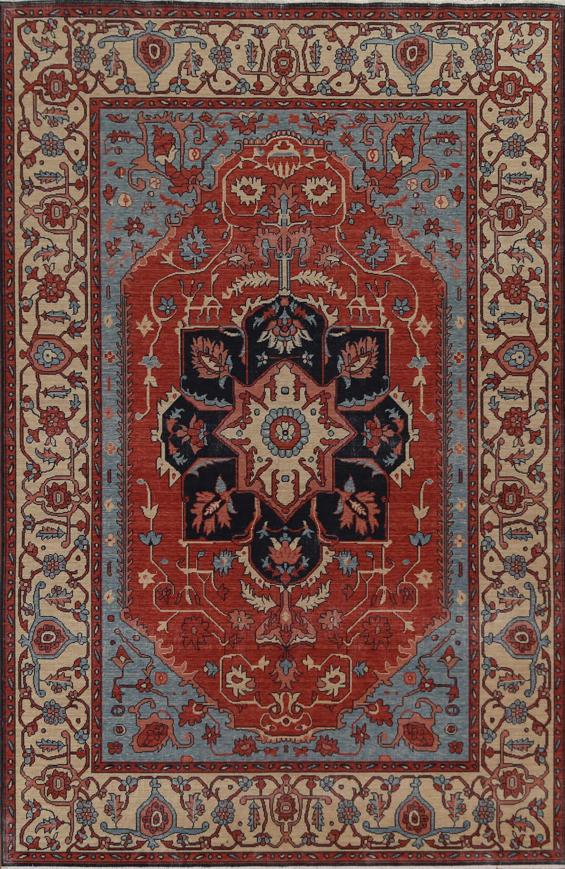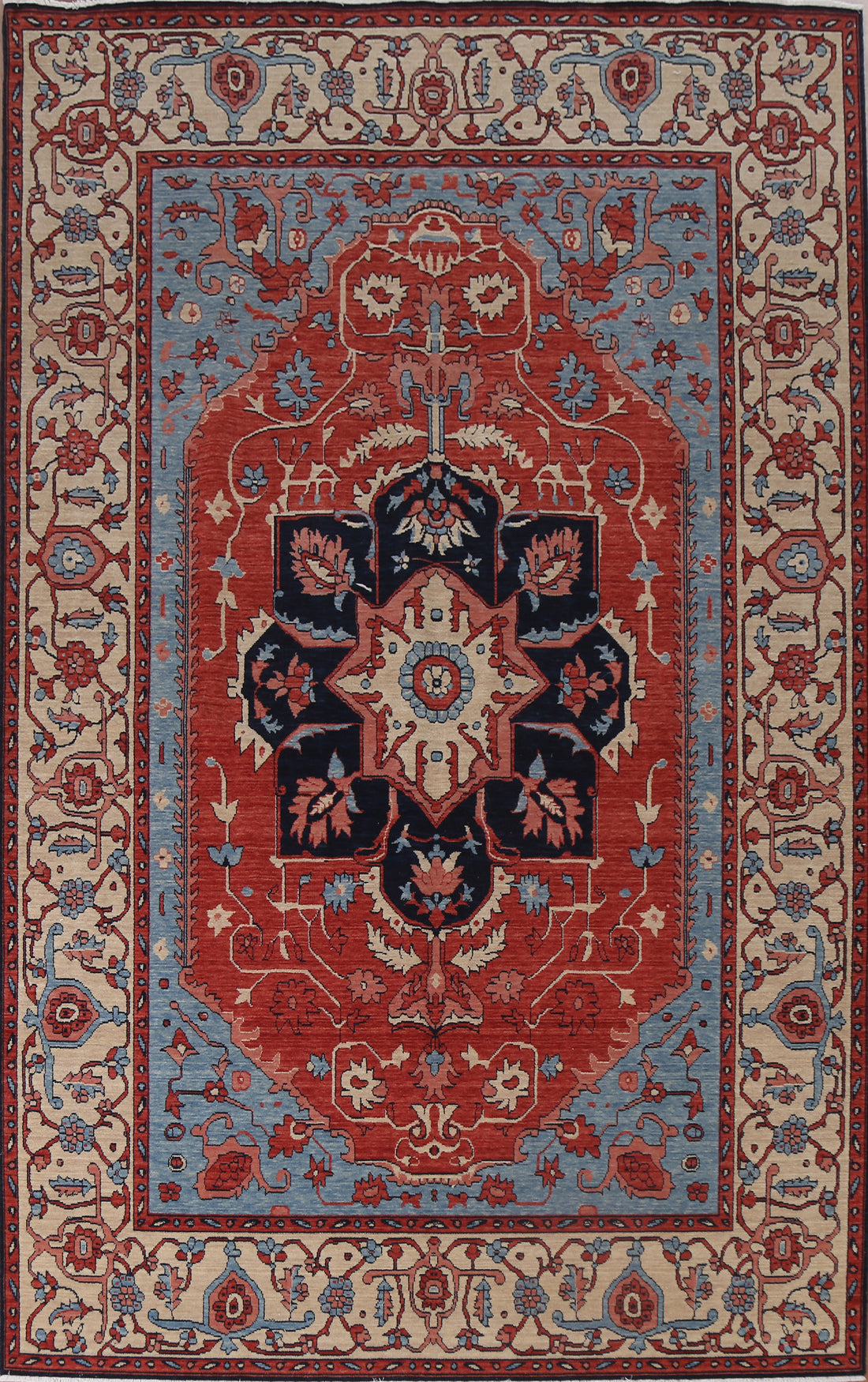 Handmade Red Heriz Serapi Turkish Wool Rug 7x10