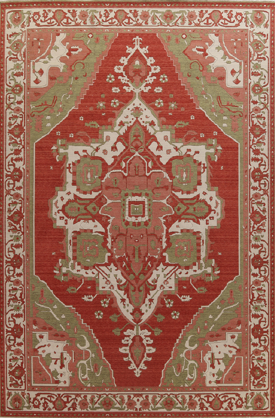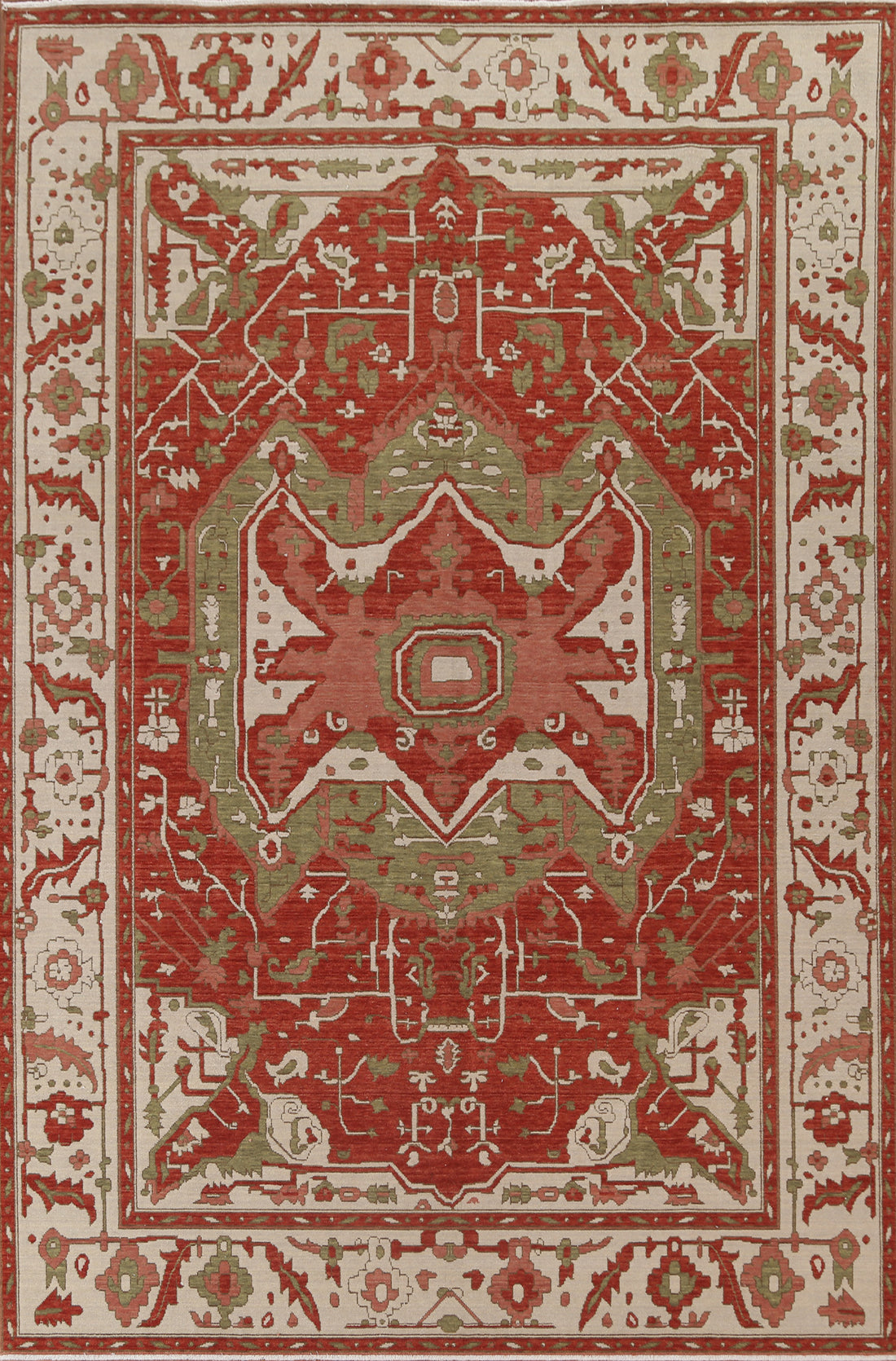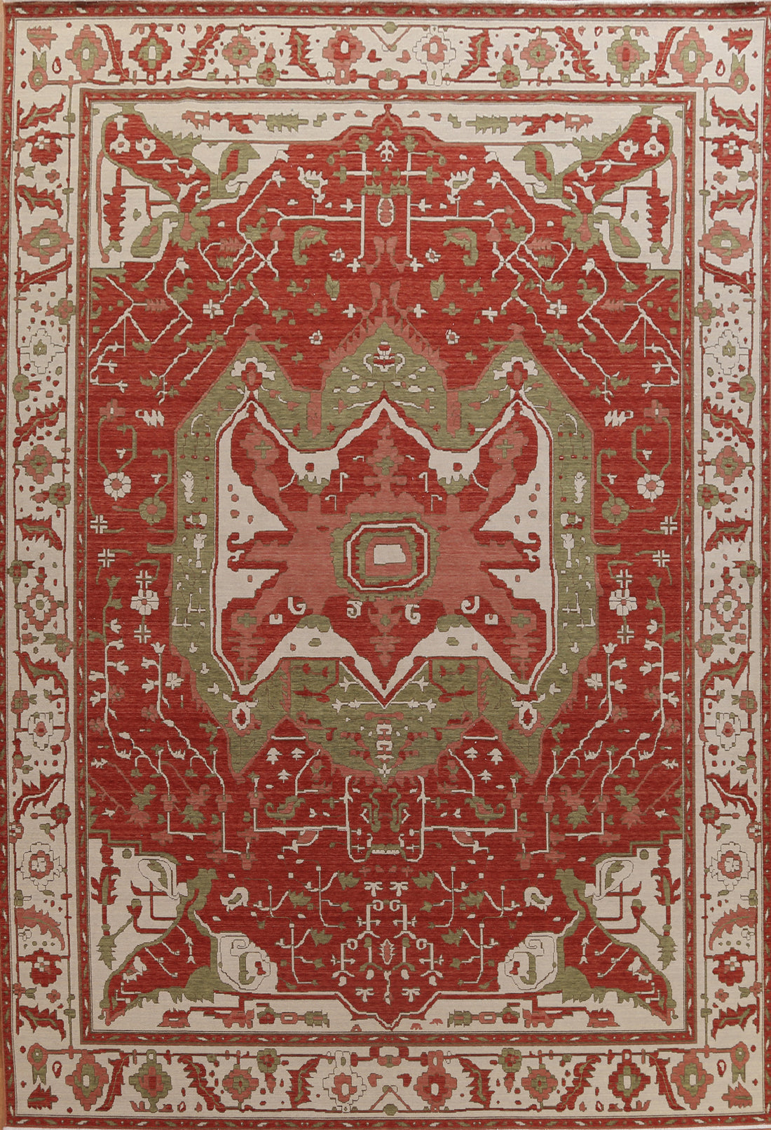 Hand-Knotted Red Heriz Serapi Oriental Wool Rug 10x13