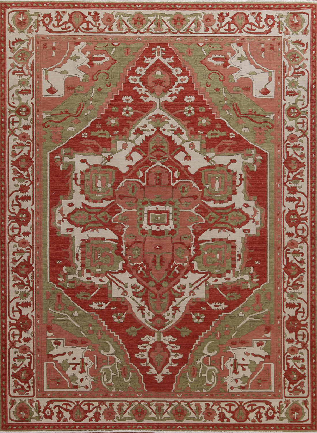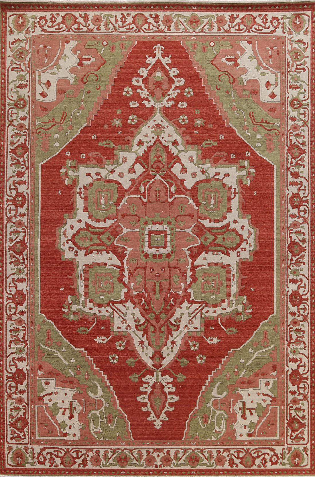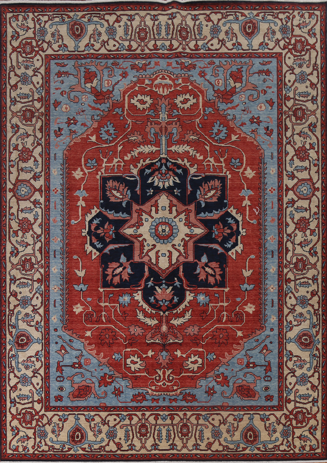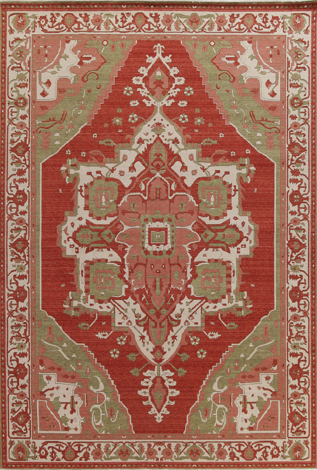Red Wool Heriz Serapi Handmade Turkish Rug 9x12