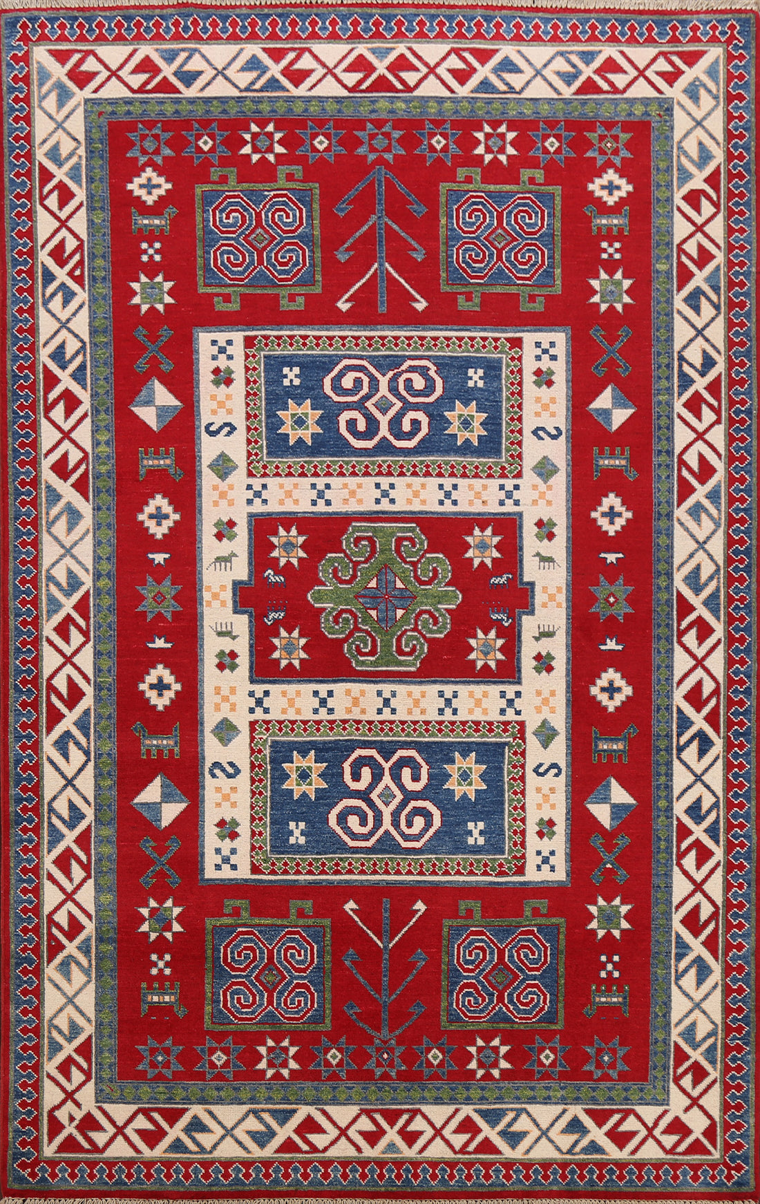 Geometric Kazak Oriental Area Rug 5x7