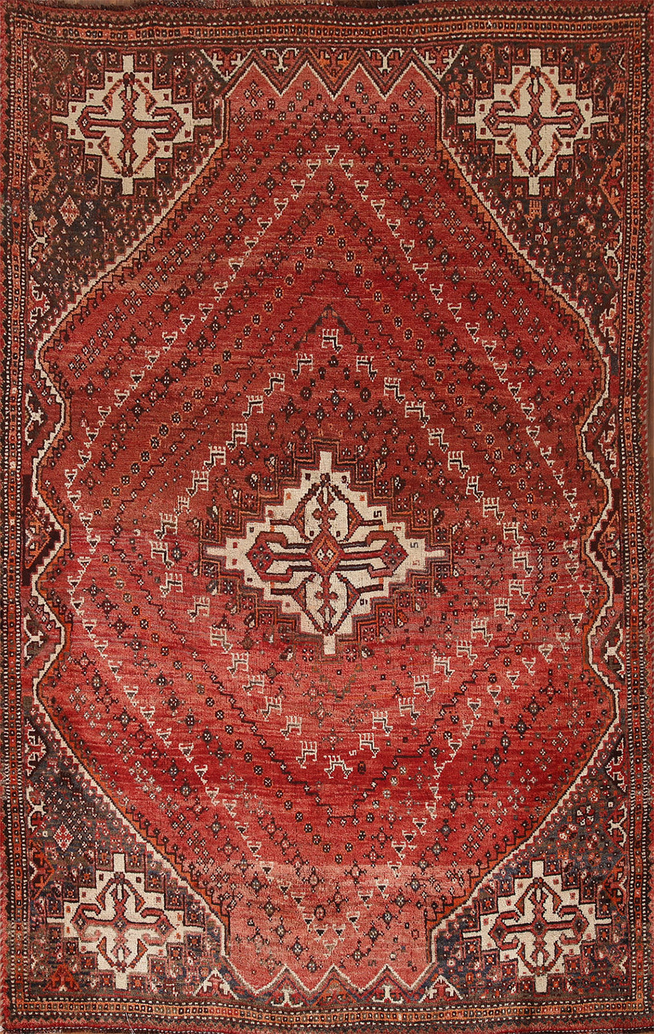 Vintage Red Wool Shiraz Persian Rug 4x6