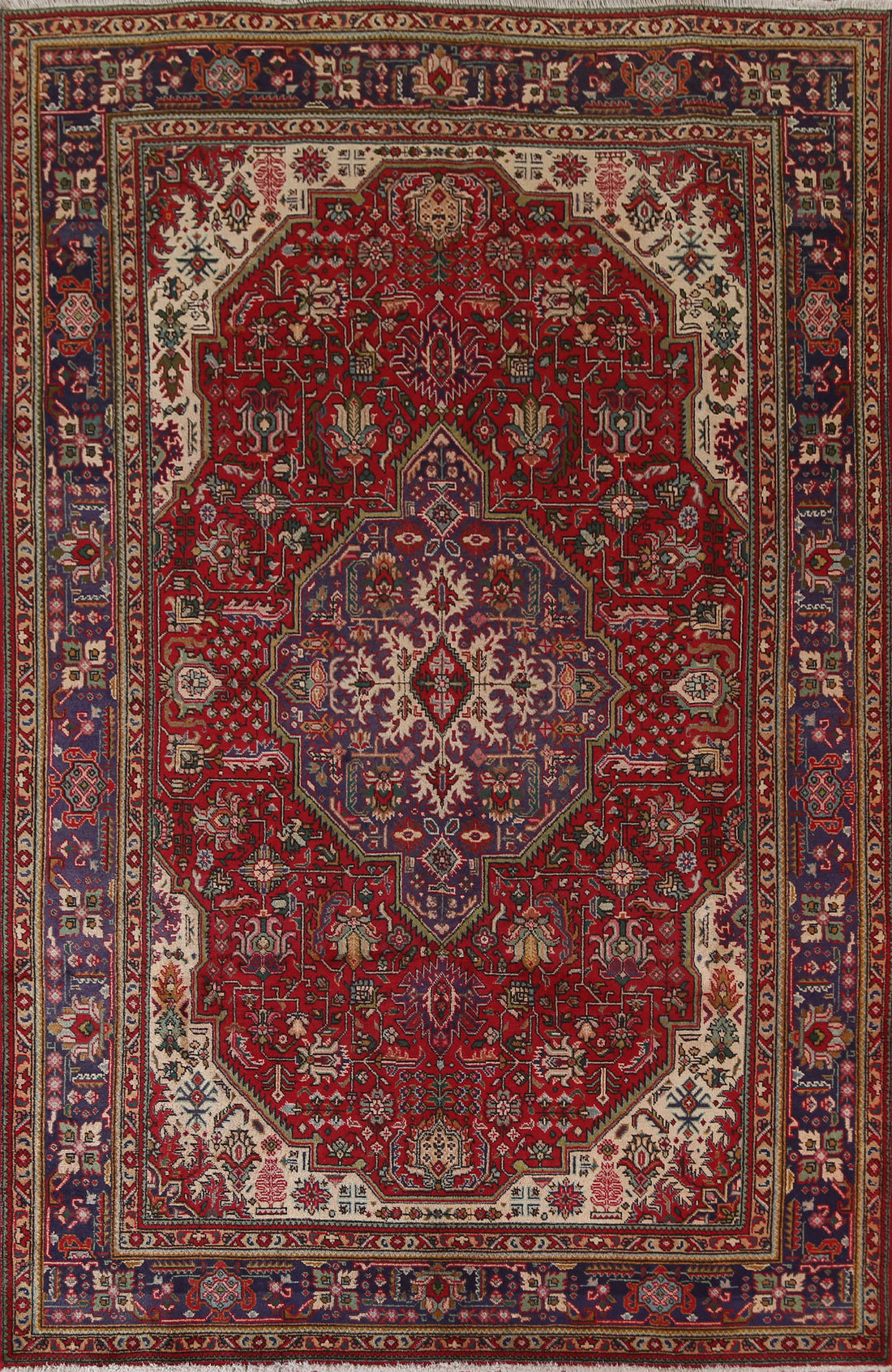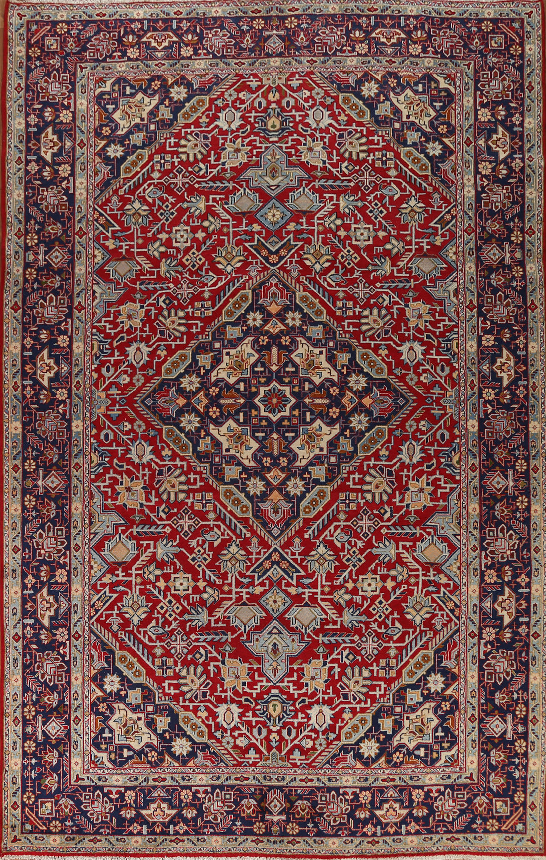 Geometric Red Tabriz Persian Area Rug 7x10