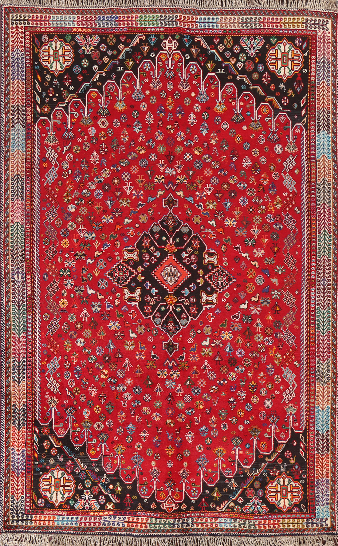 Vintage Tribal Red Shiraz Persian Area Rug 7x11