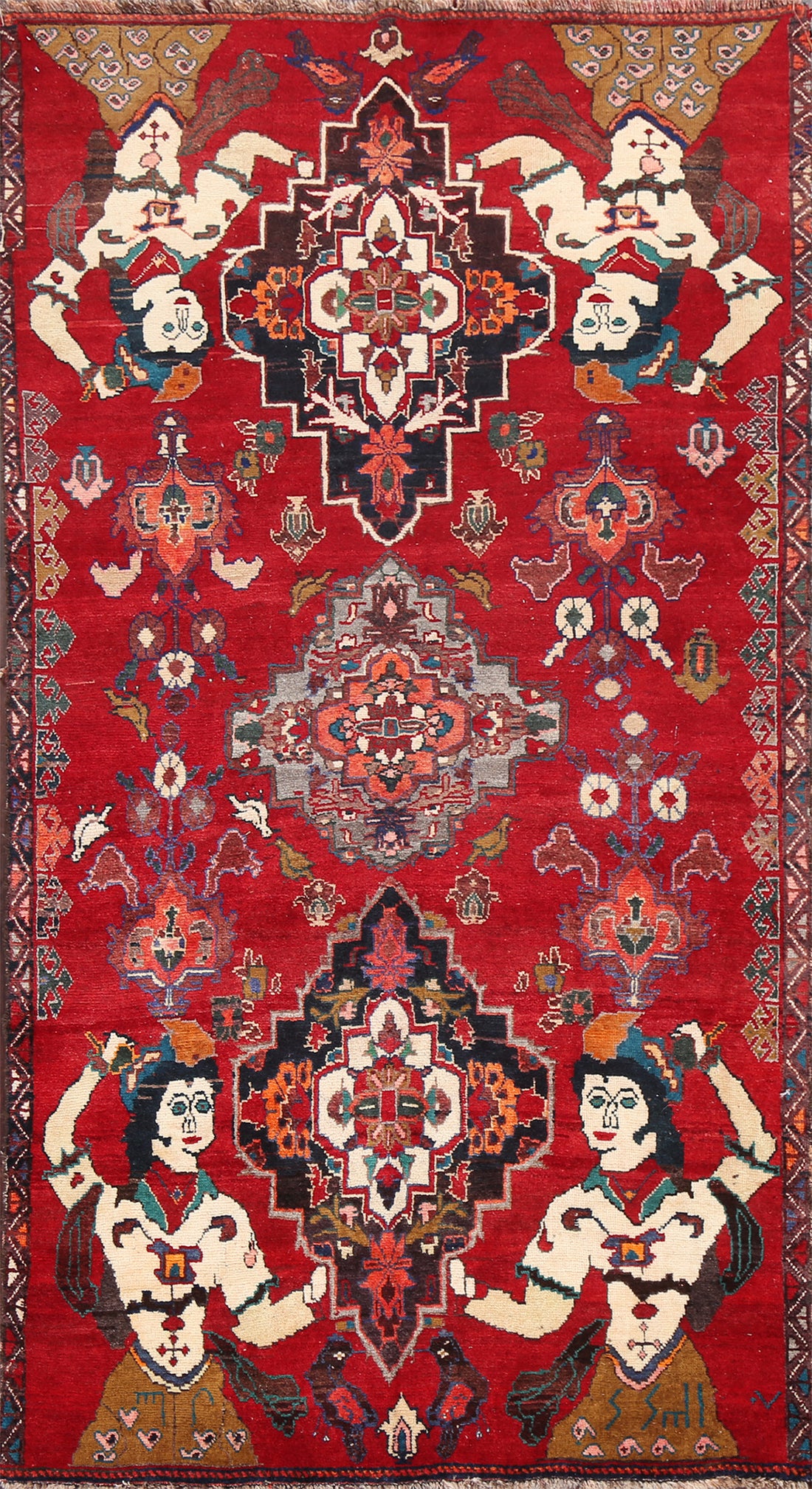 Pictorial Red Vintage Qashqai Persian Area Rug 4x8