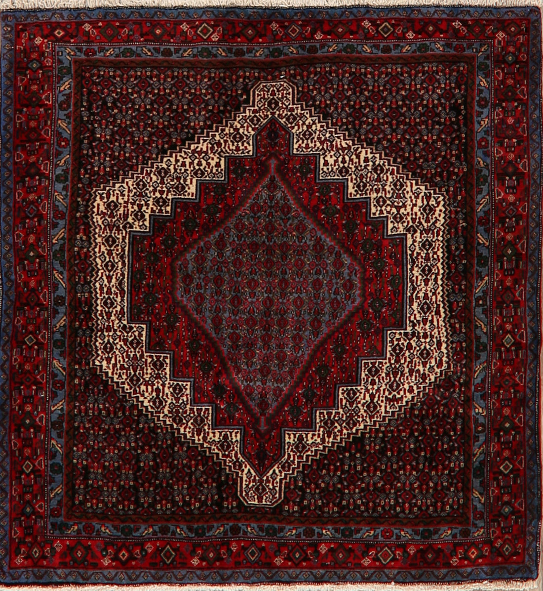 Geometric Red Wool Bidjar Persian Rug 4x5