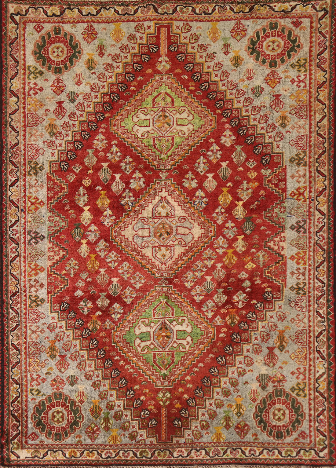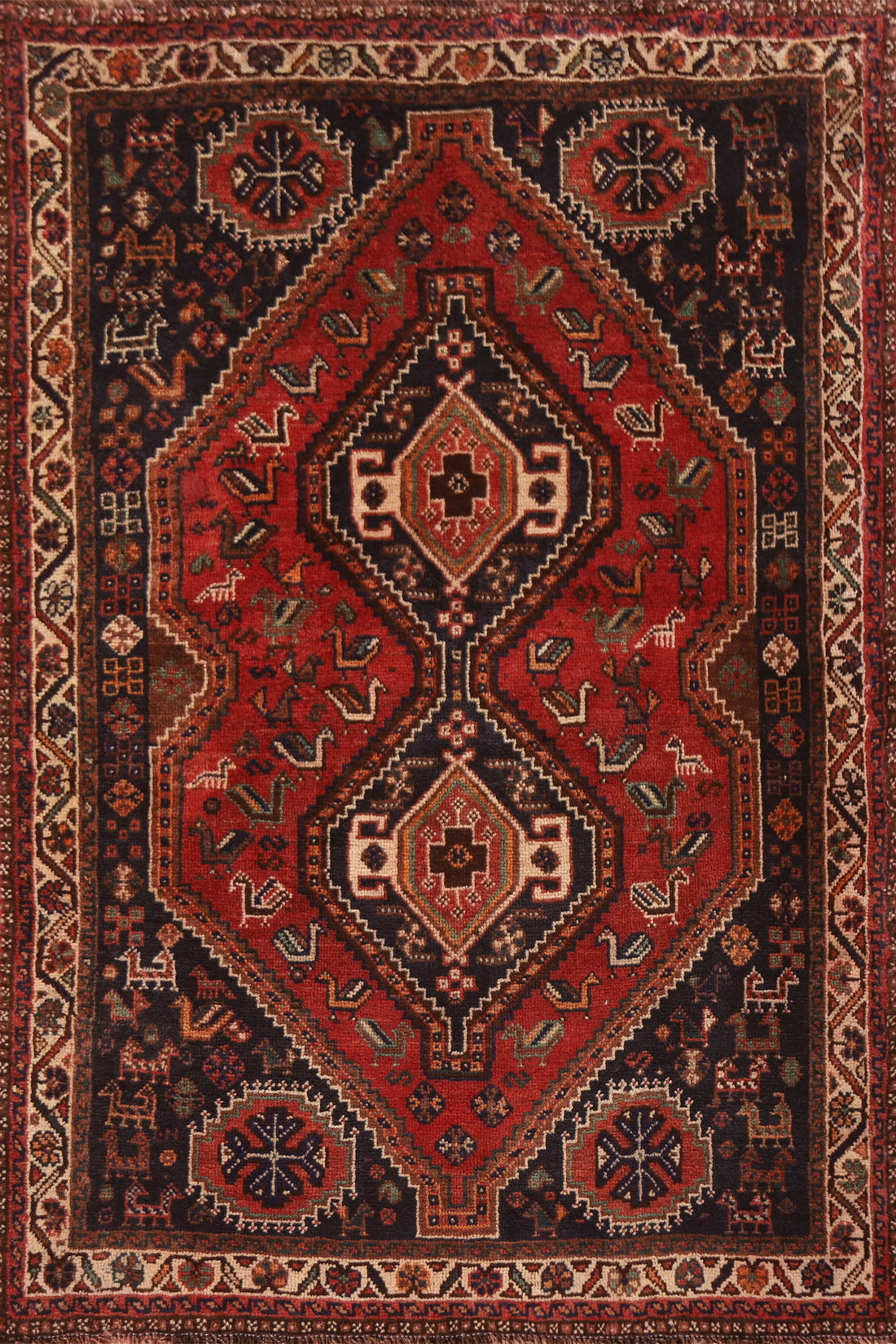 Vintage Wool Shiraz Persian Rug 4x5
