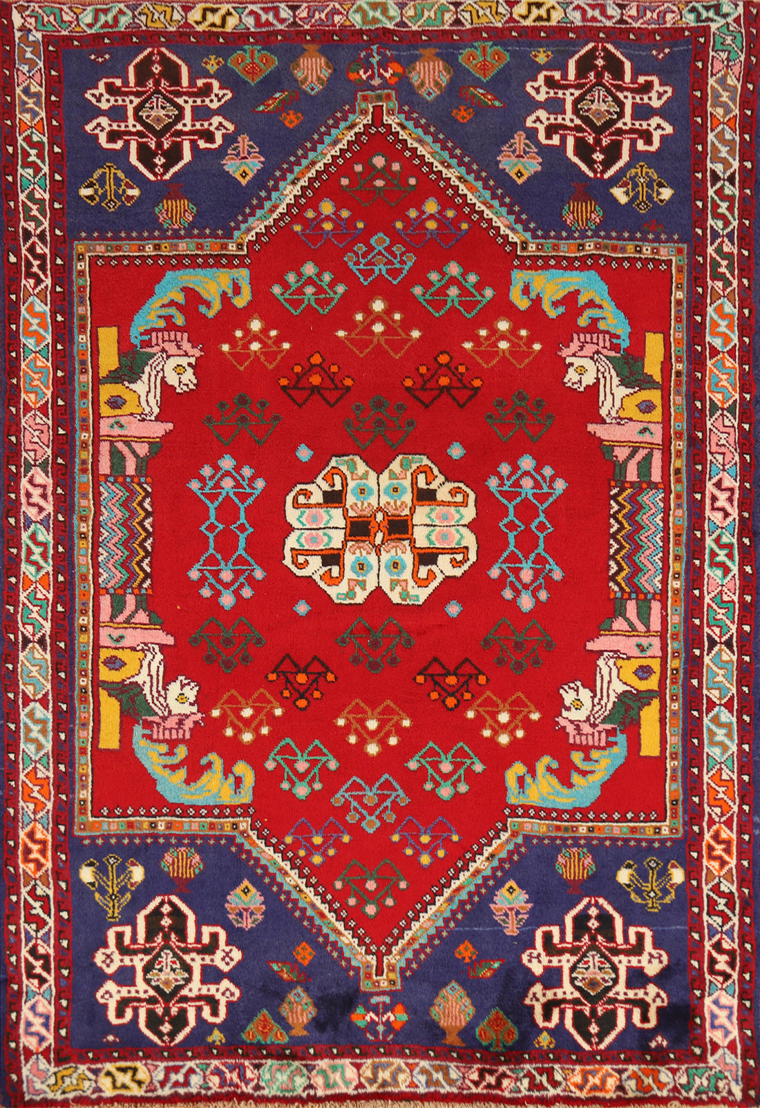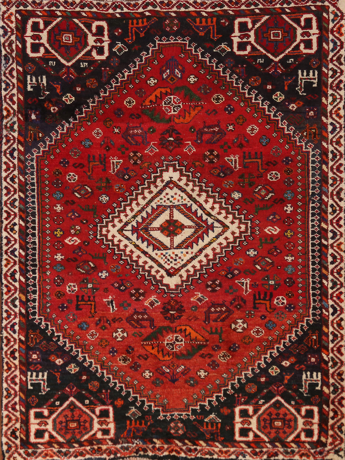 Red Wool Geometric Shiraz Persian Rug 4x5