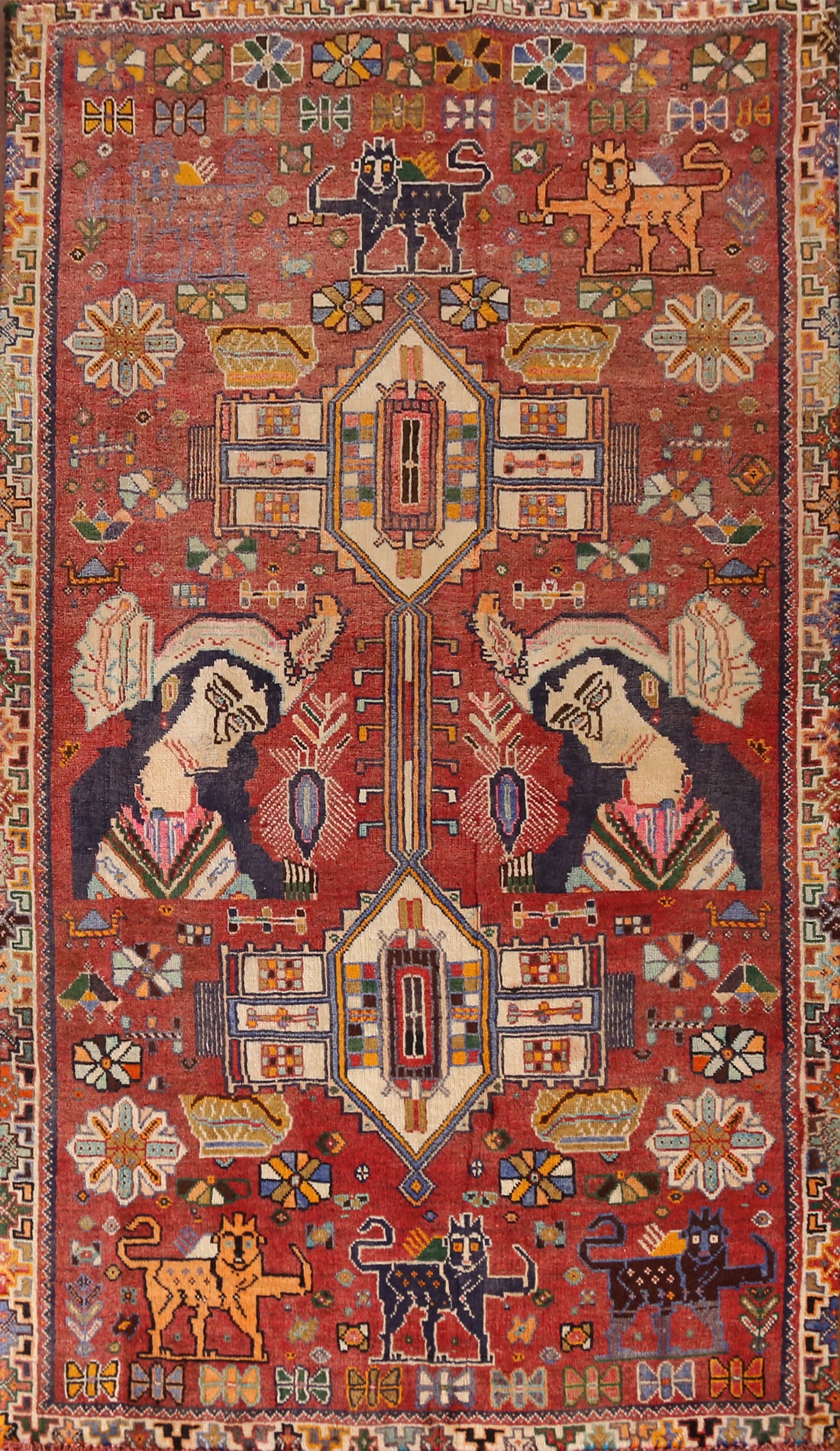 A Beautiful Genuine Persia ( Persia ) Shiraz rug is Hand Knotted by skillful weavers...
