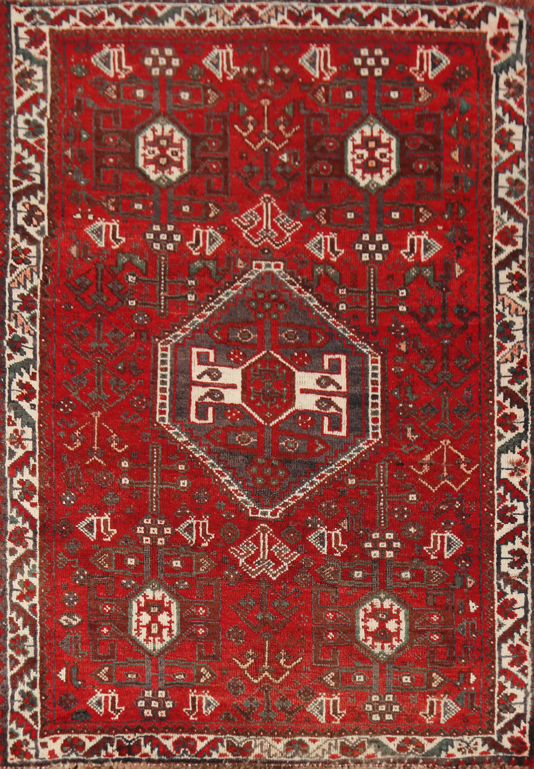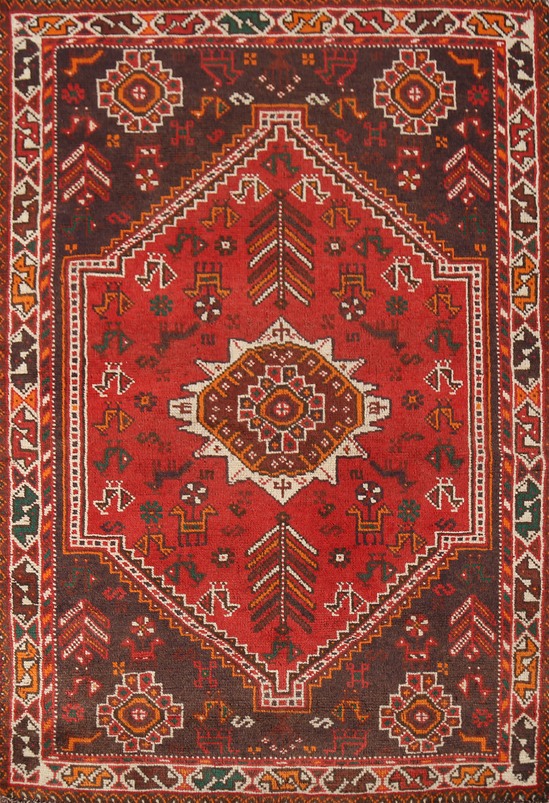 Animals Red Tribal Shiraz Persian Rug 3x6