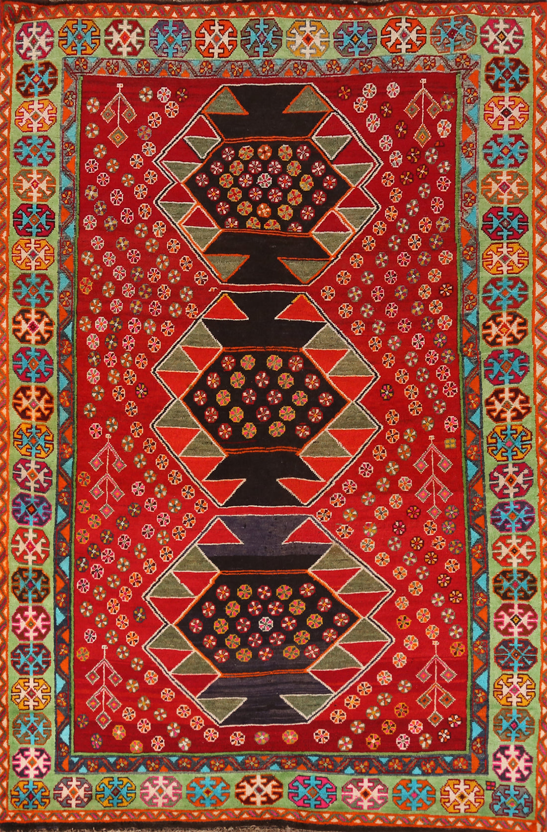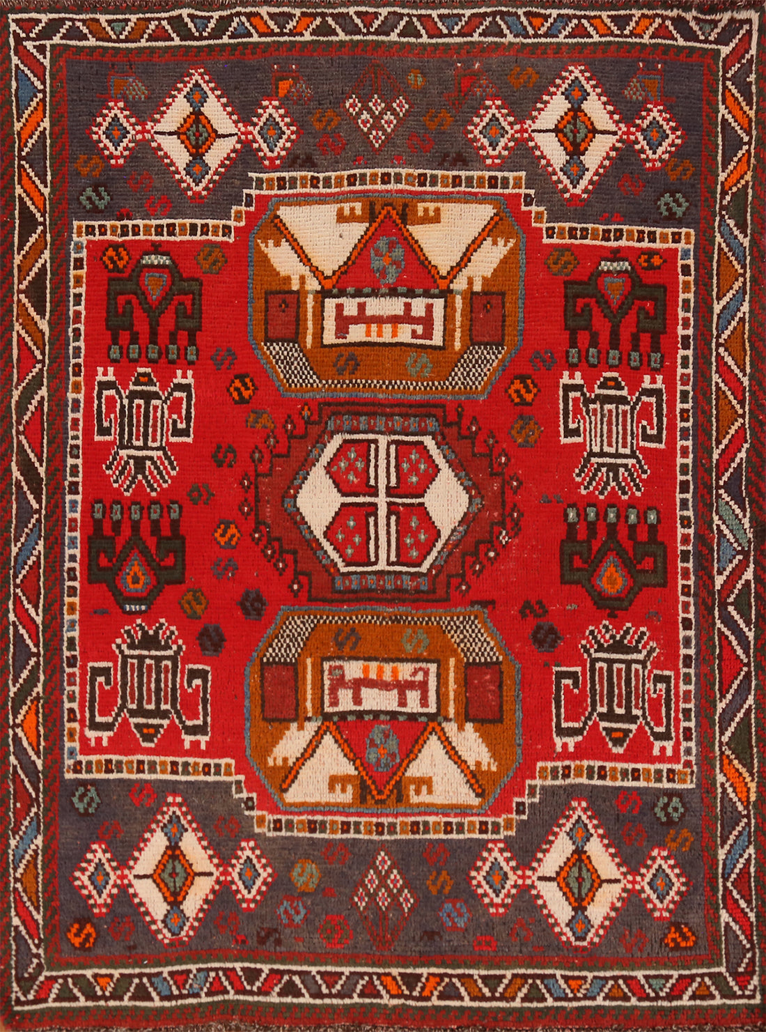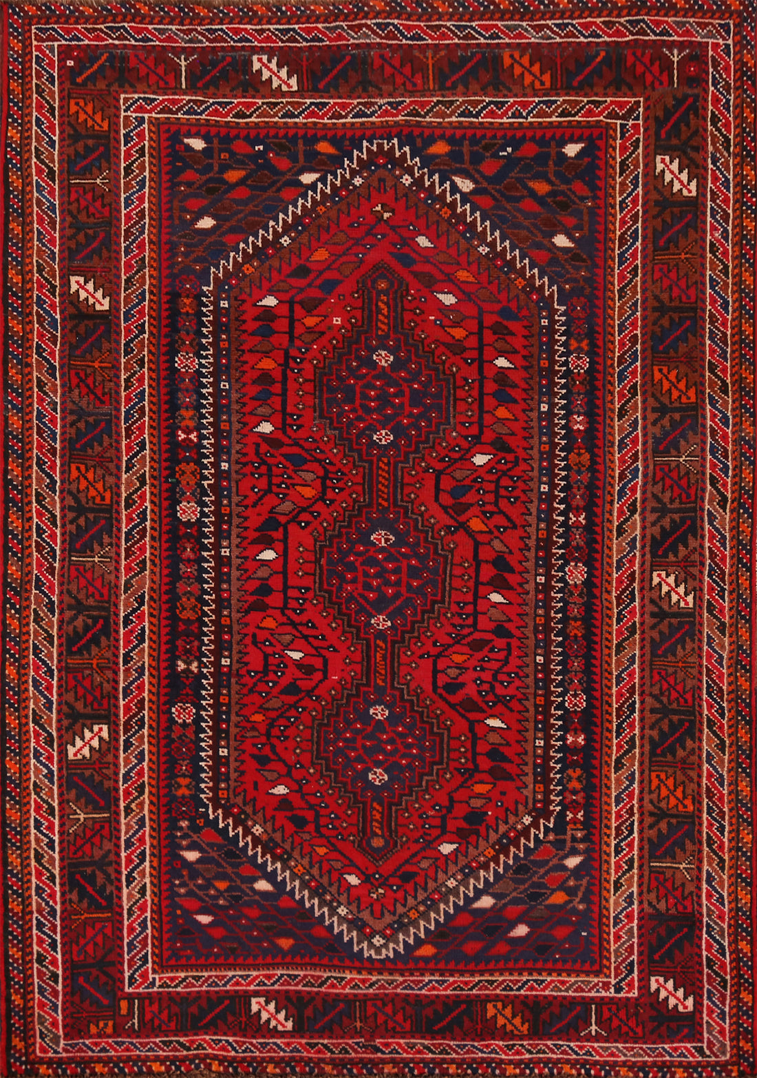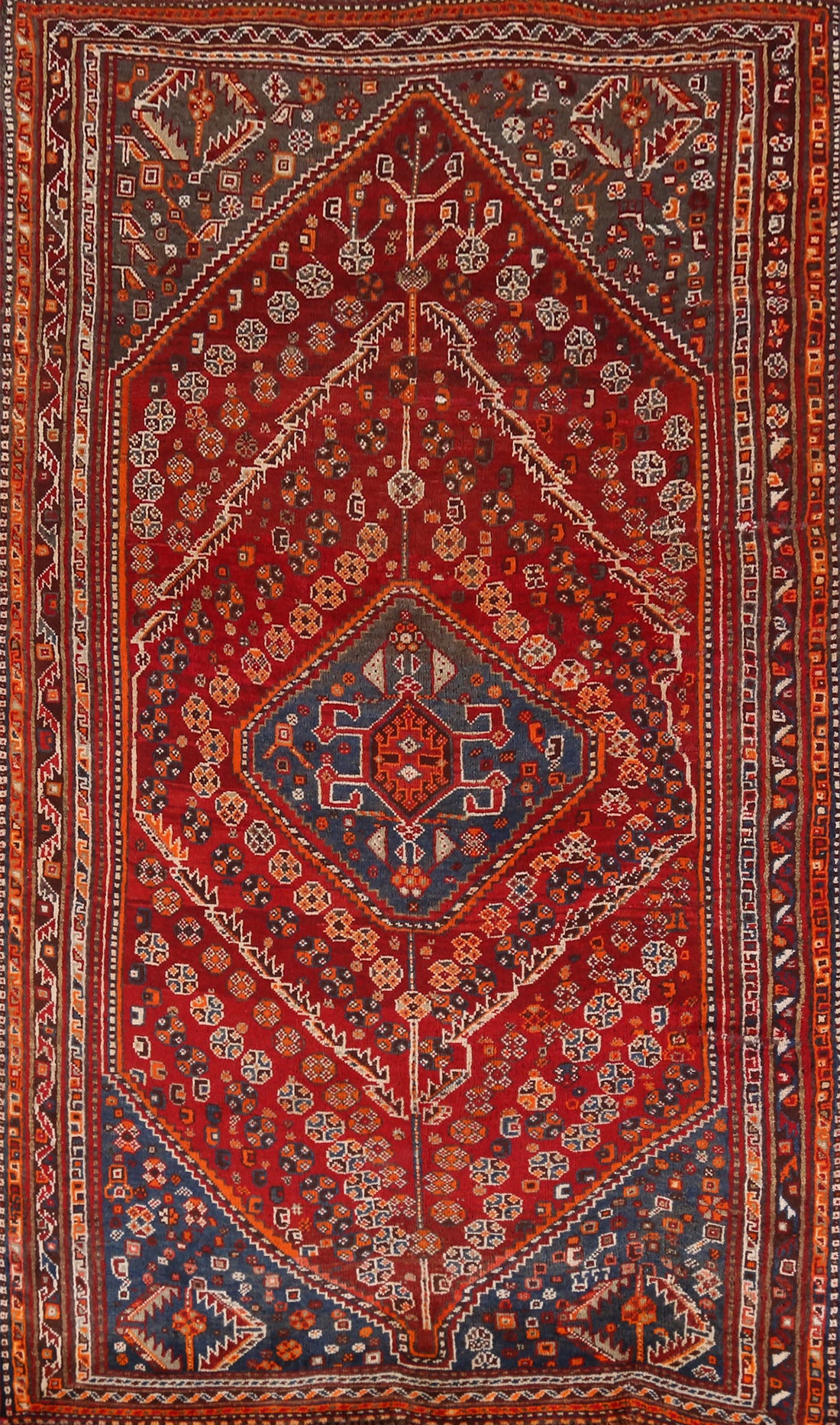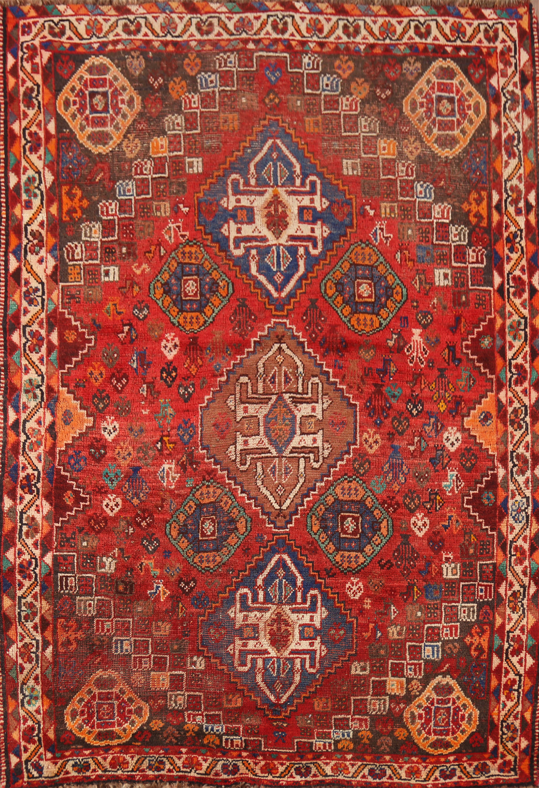 Tribal Red Wool Shiraz Persian Rug 5x6
