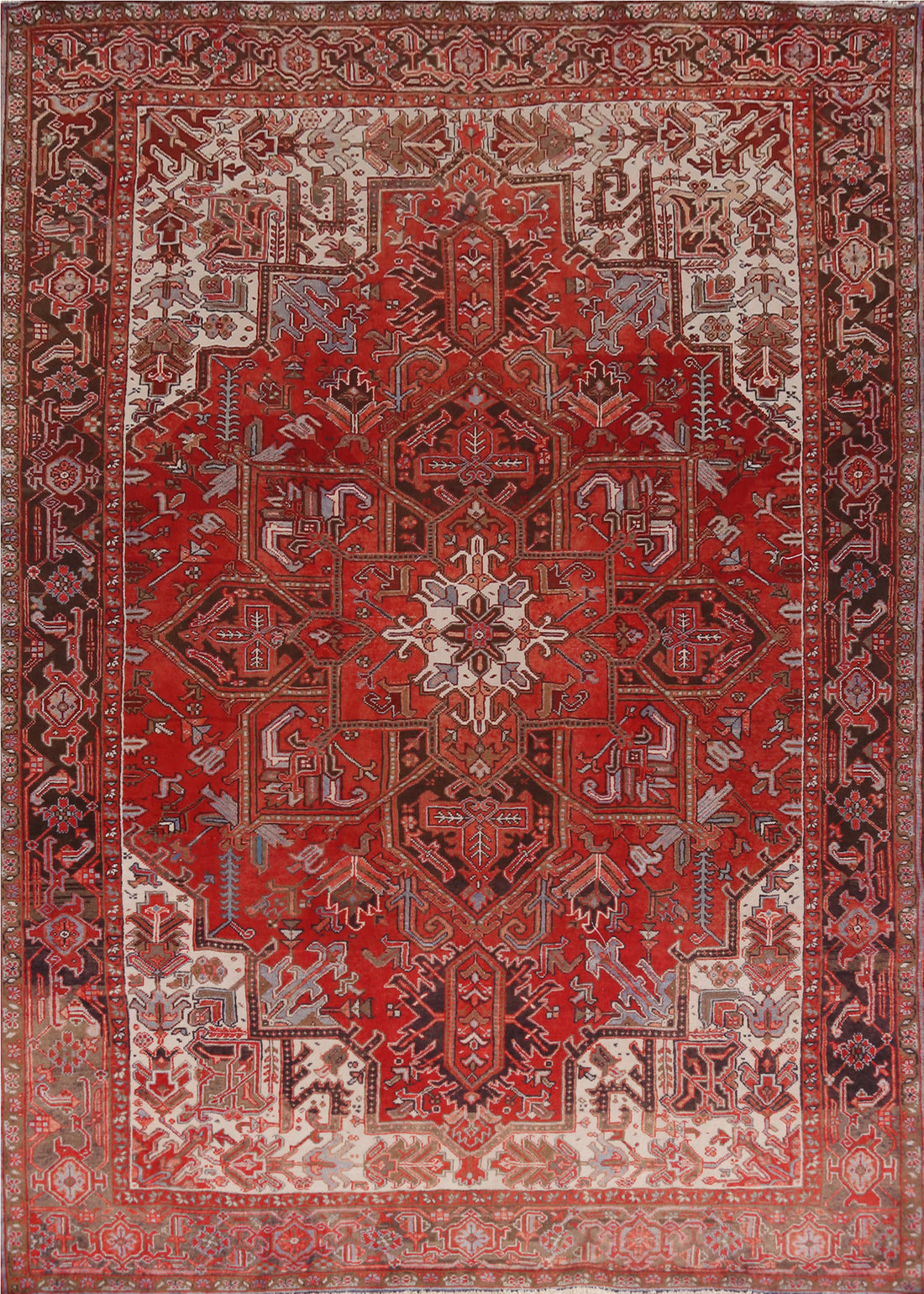 Vintage Red Medallion Heriz Persian Area Rug 10x13