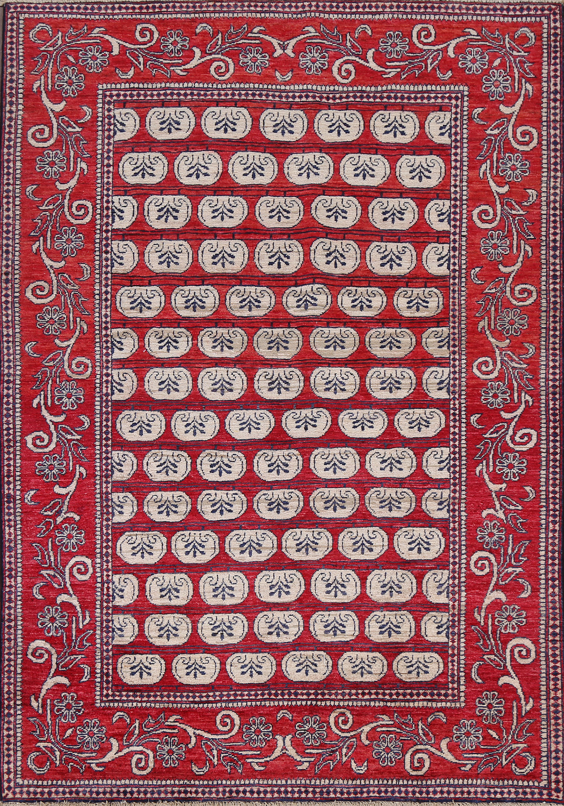 Vegetable Dye Red Wool Kazak Oriental Area Rug 5x7