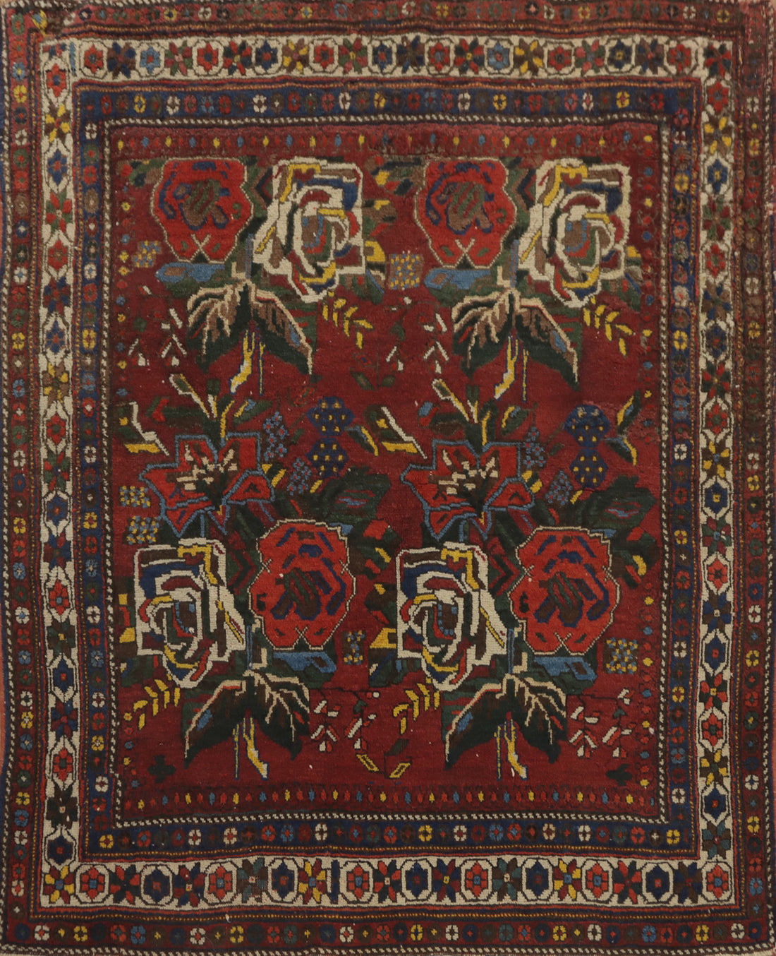 Antique Vegetable Dye Bidjar Halvaei Square Persian Rug 4x4