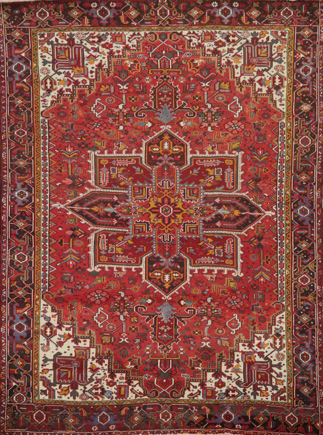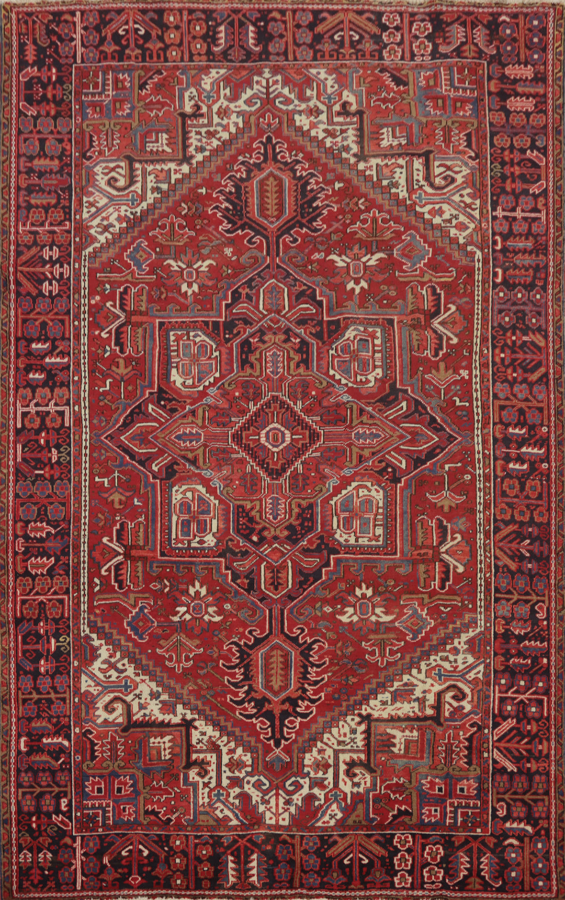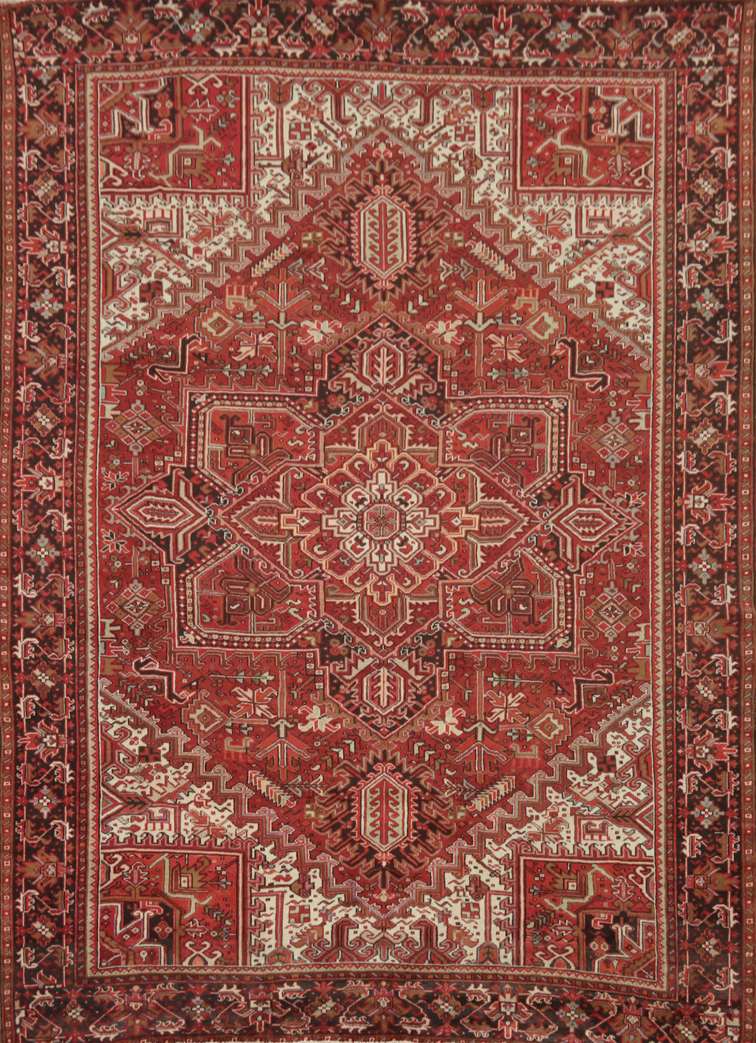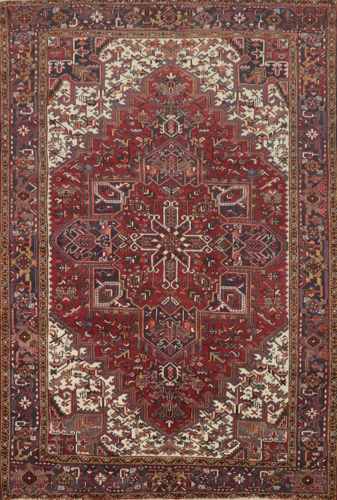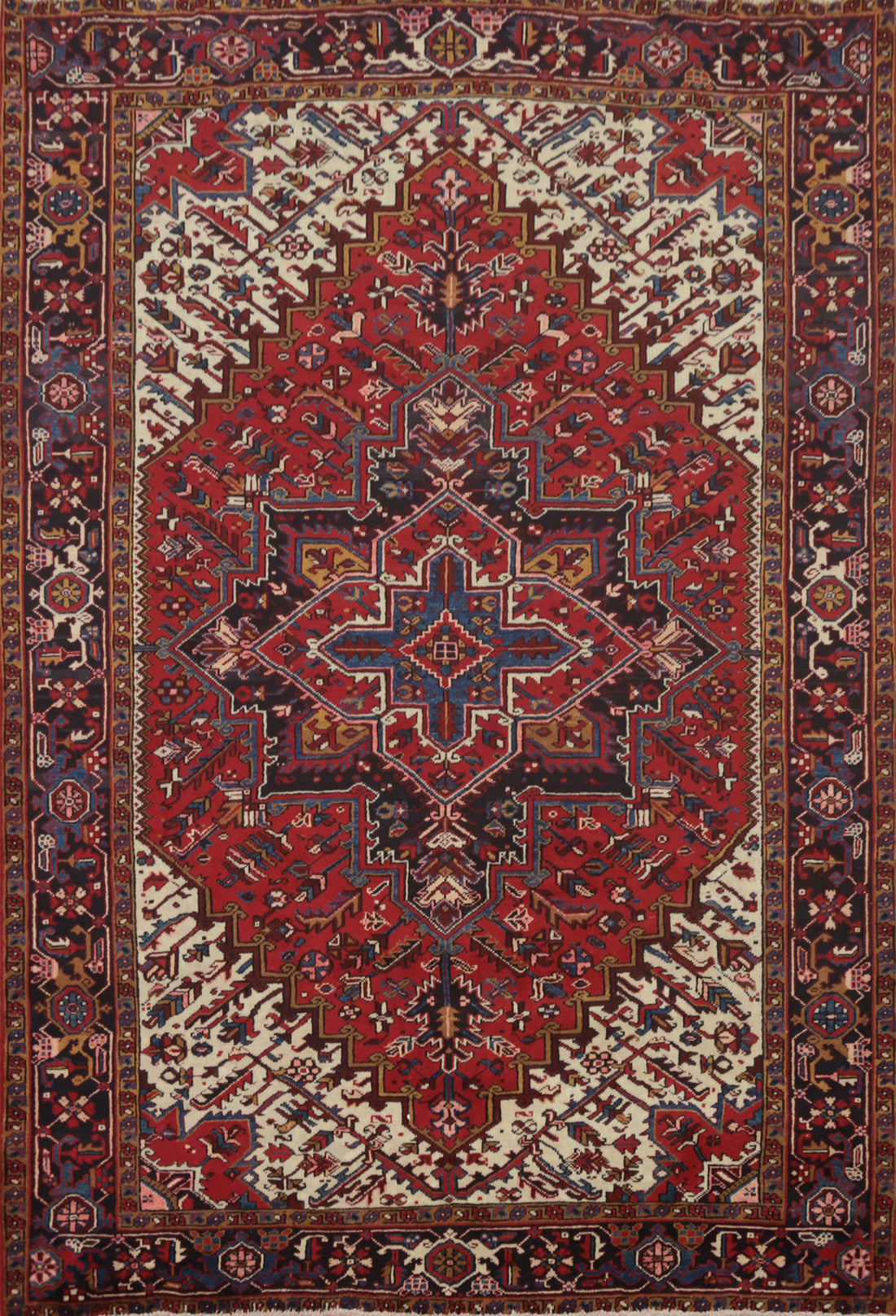 Vintage Red Wool Heriz Persian Area Rug 9x11