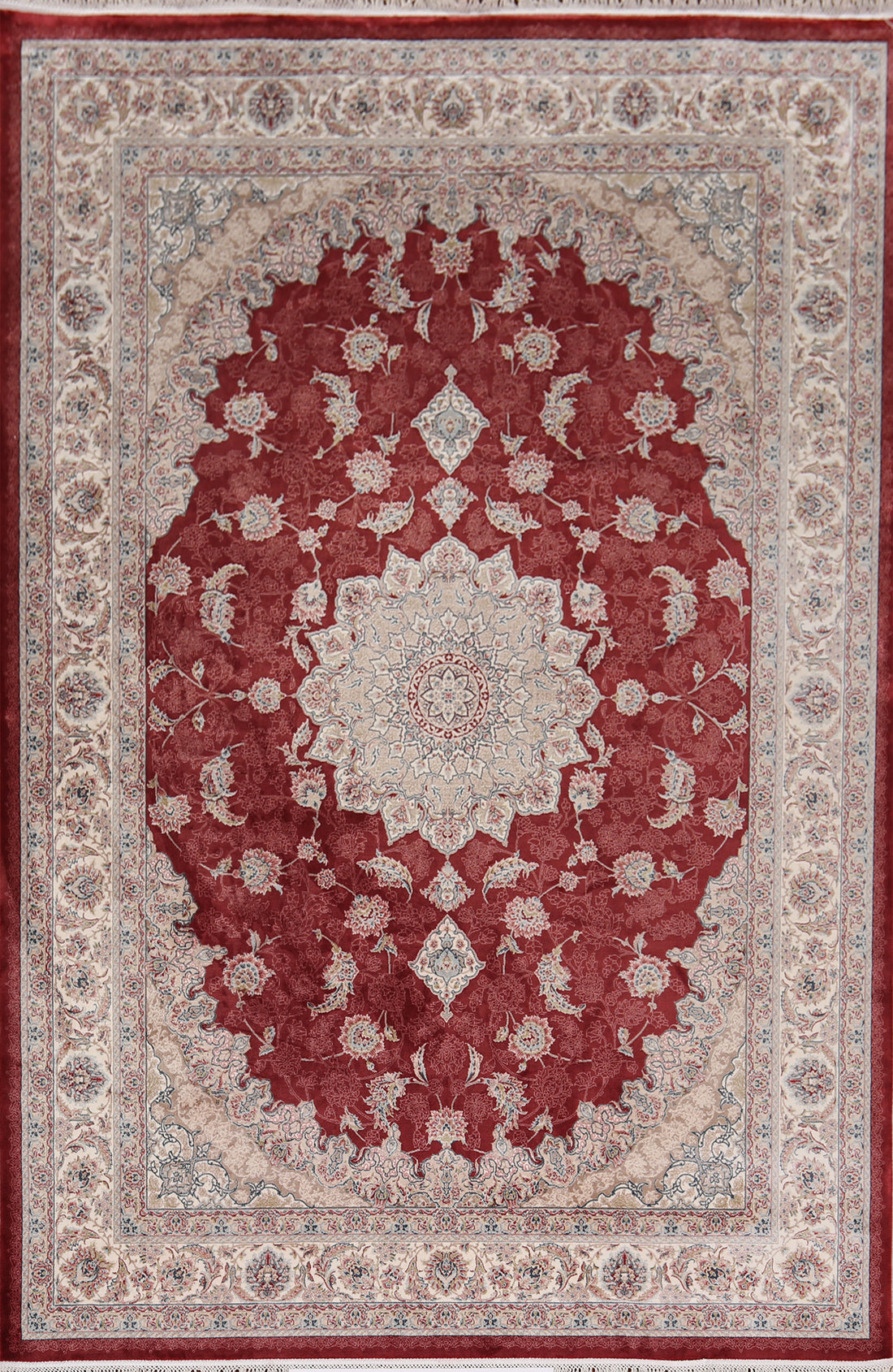 Red Silk Tabriz Turkish Area Rug 5x8