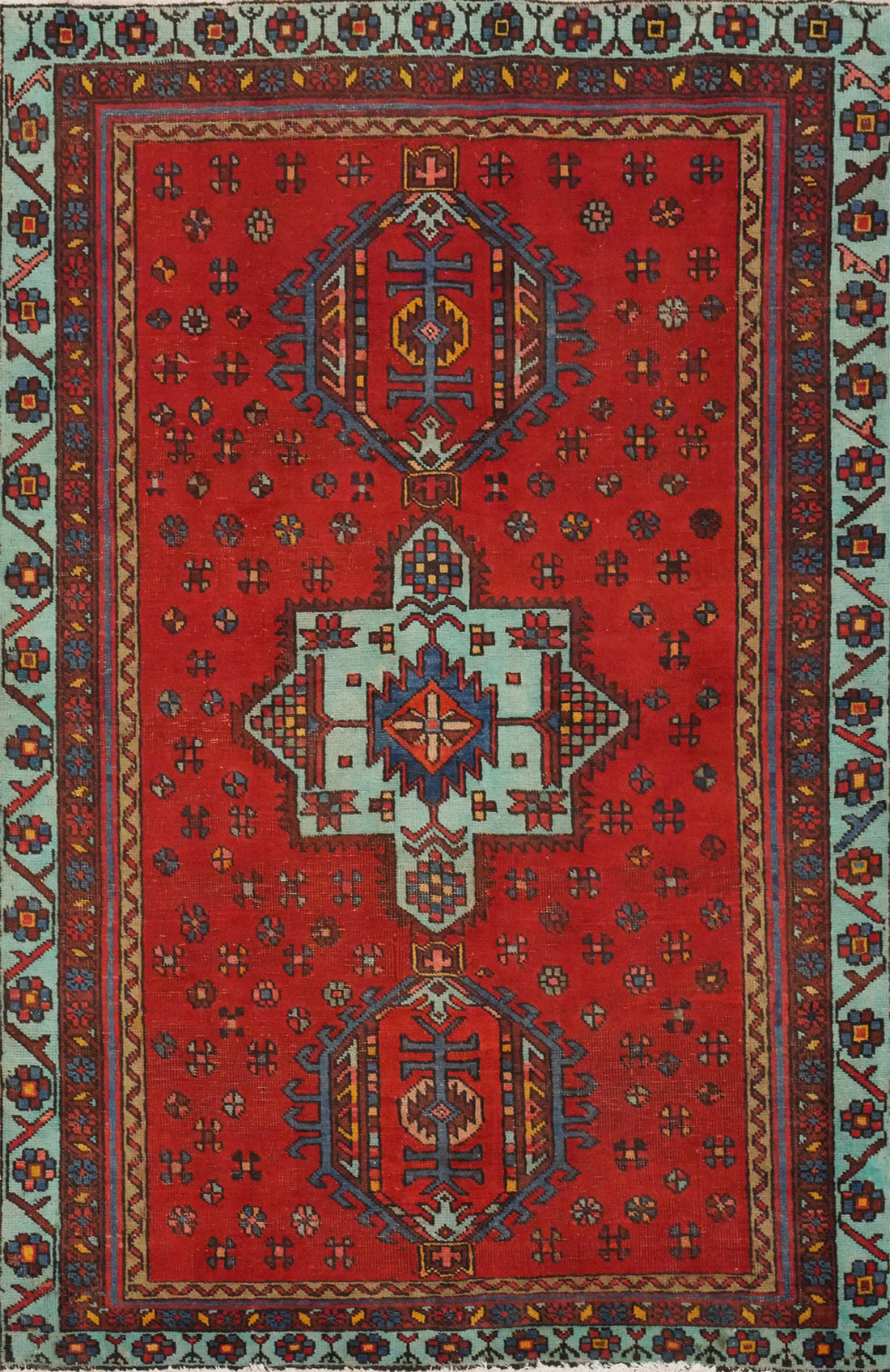 Red Geometric Heriz Persian Rug 4x5