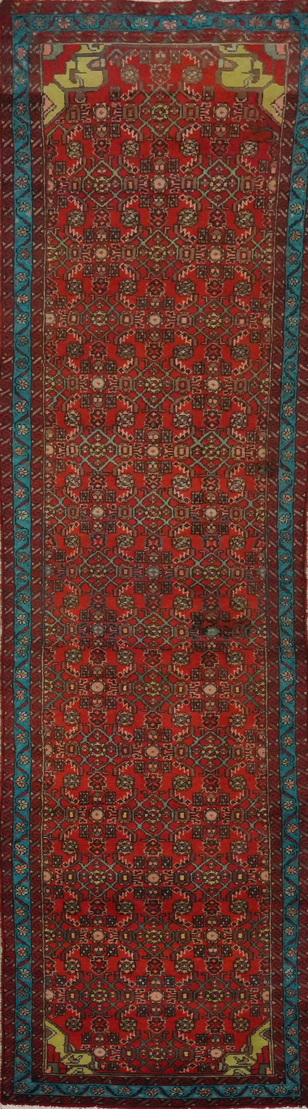 Vintage Red Wool Hamedan Persian Runner Rug 3x11