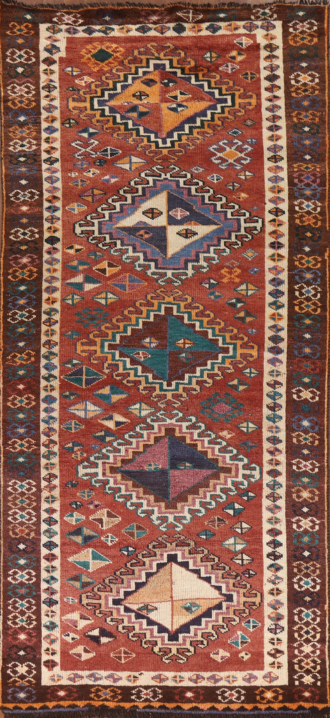 Geometric Hamedan Persian Runner Rug 4x10