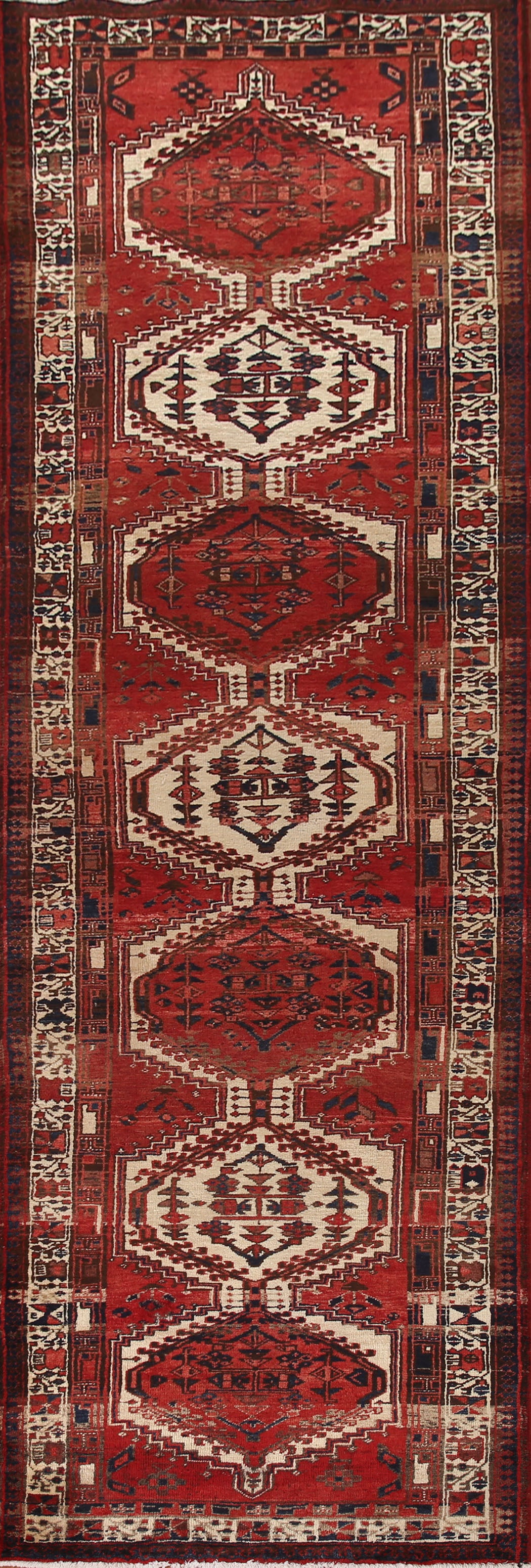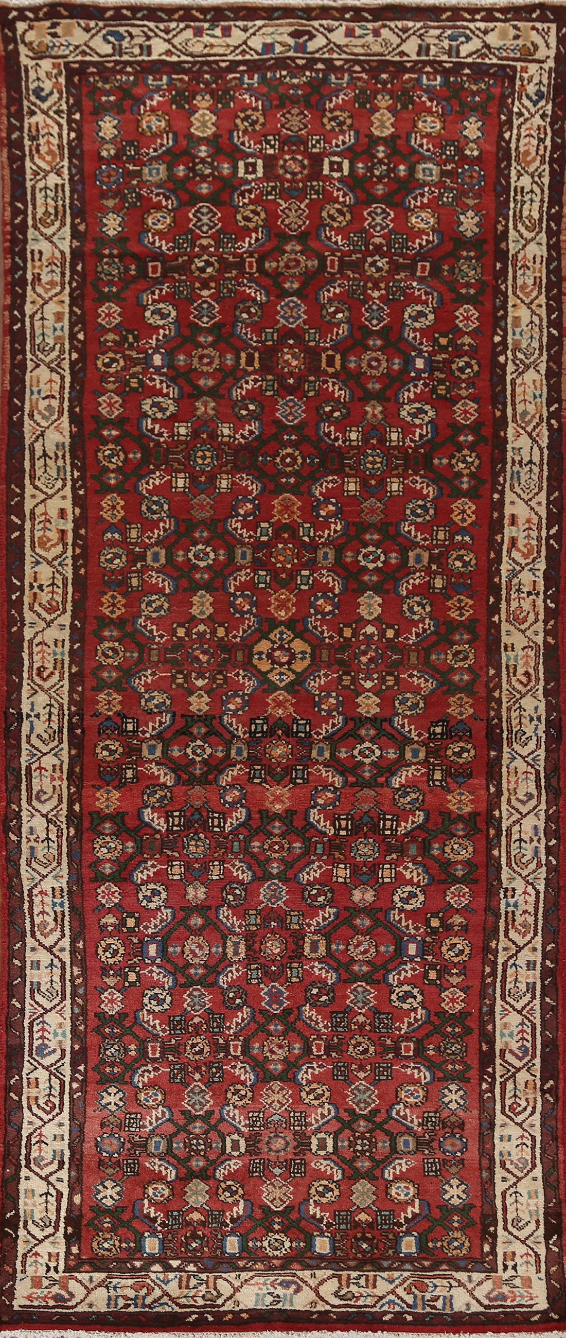 Geometric Red Hamedan Persian Runner Rug 4x9