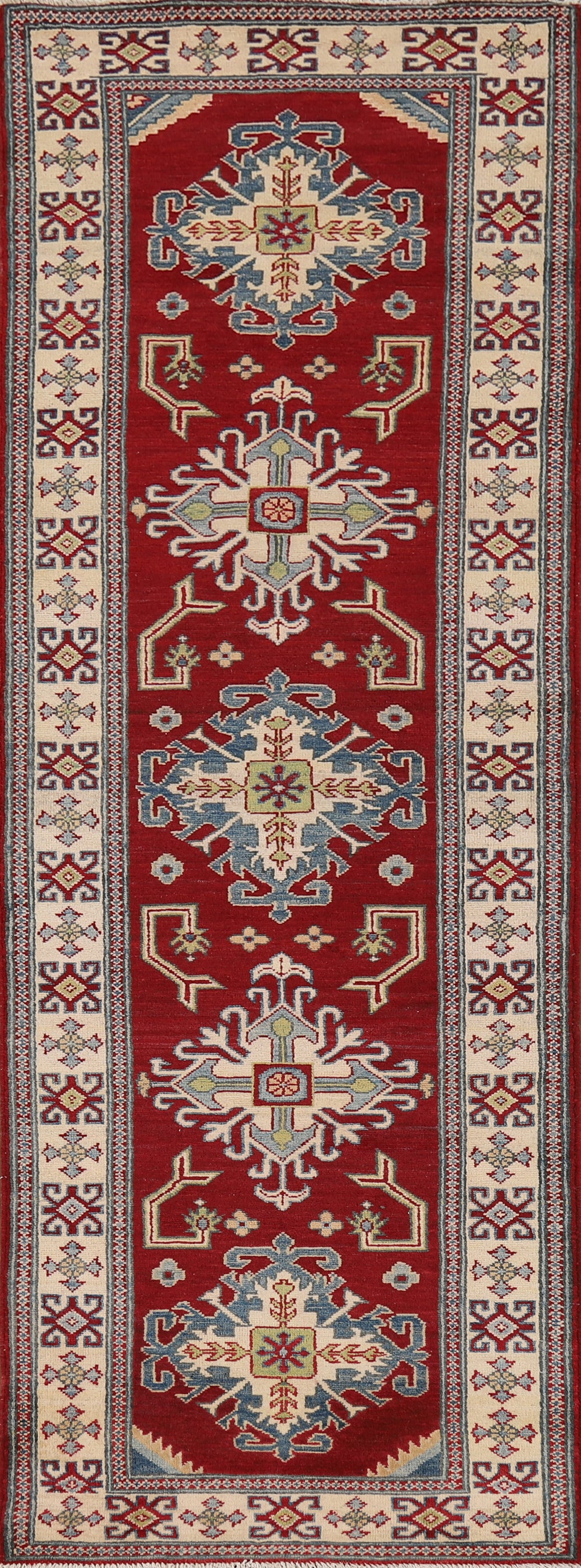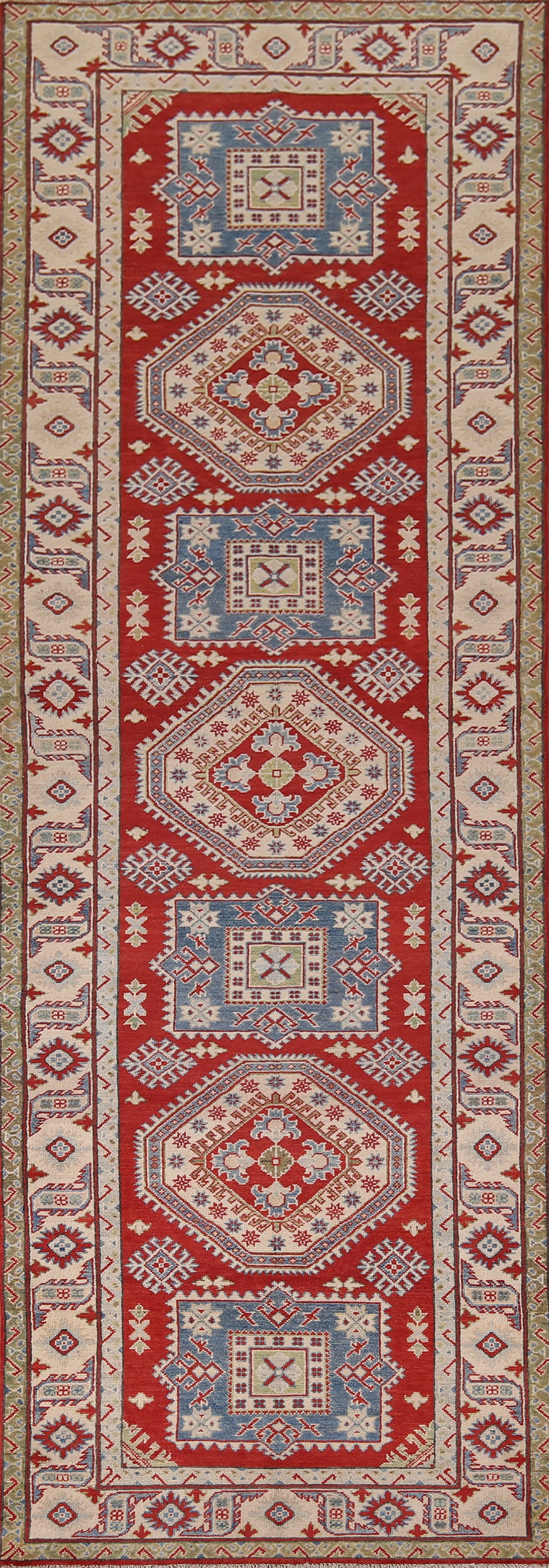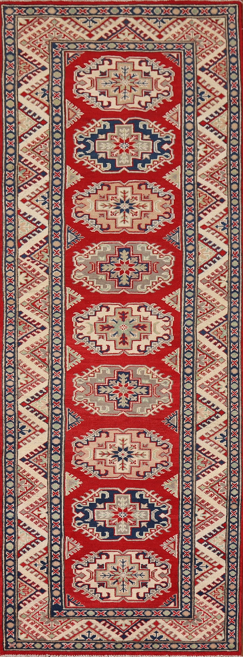 Geometric Red Kazak Oriental Runner Rug 4x13